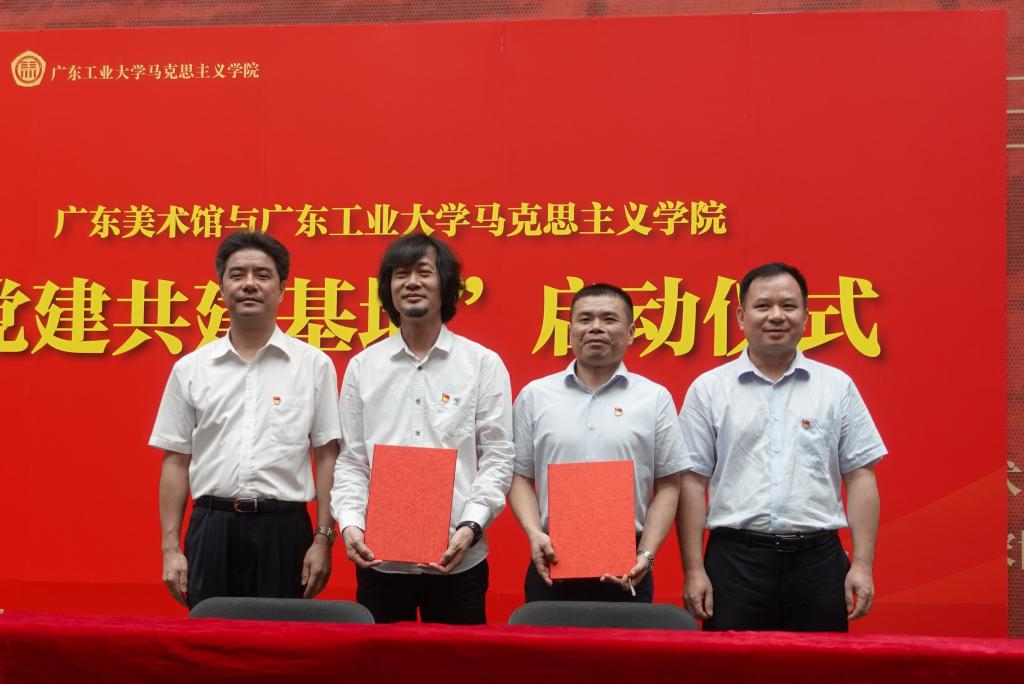 随后,广东美术馆党支部书记王绍强、马克思主义学院党总支书记郑鹏进行党建共建签约仪式。与会领导和嘉宾共同为基地揭牌。