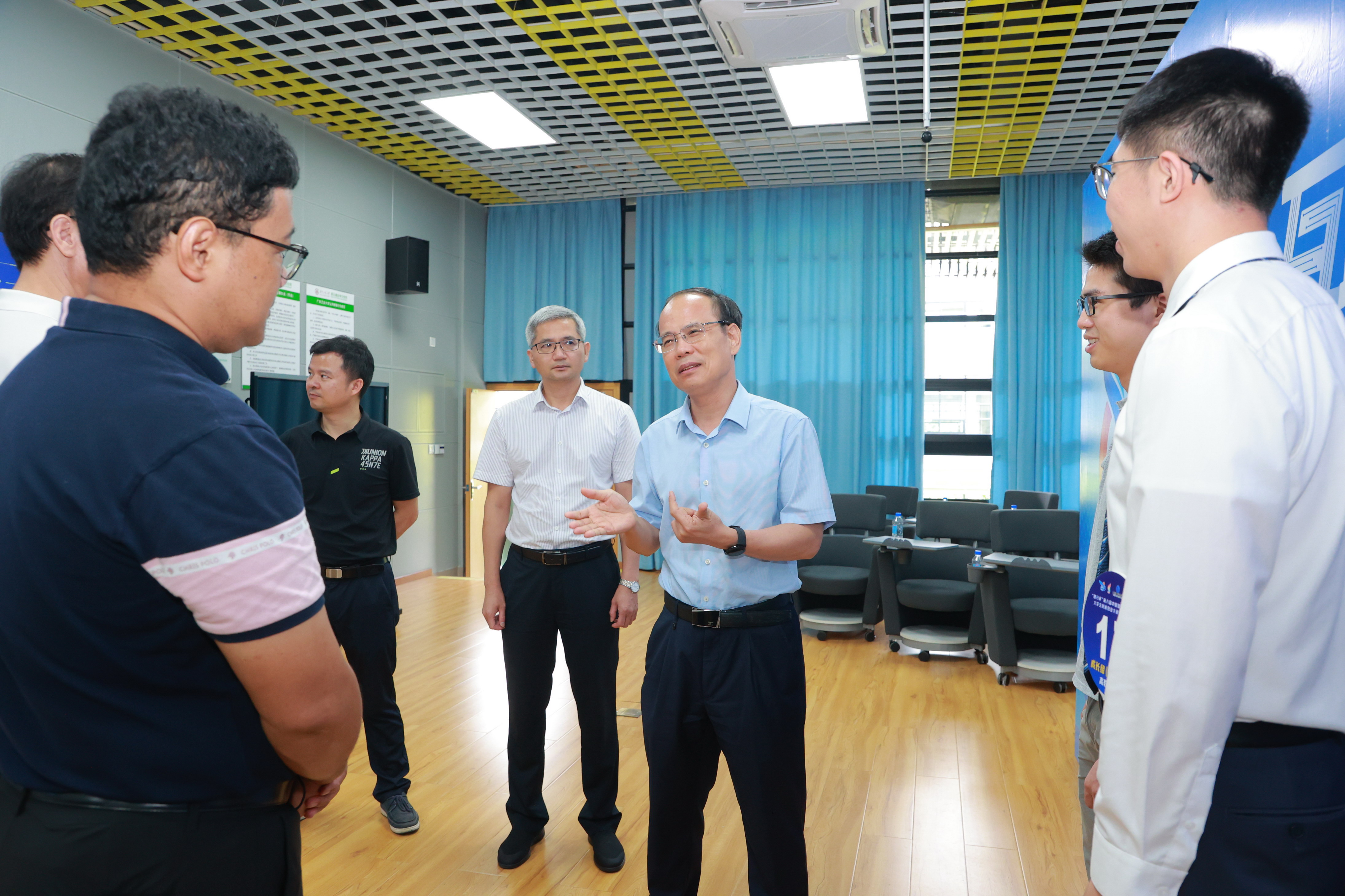 备赛期间,校领导多次到备赛现场慰问参赛团队,观摩赛前模拟赛为参赛项目“把脉问诊”,帮助项目解决实际困难,鼓励广工学子进一步发挥“敢闯会创”的精神,在双创舞台上展现出广工双创青年“务实进取、勇于攀峰”的精神风貌,争做“融入产业、创新担当”的新时代攀登者和答卷人。