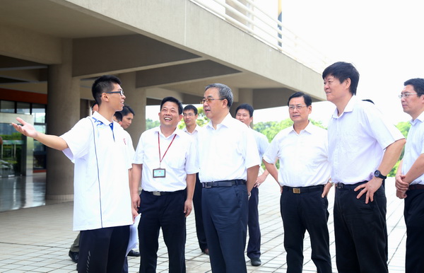 本网讯6月30日上午,省委书记胡春华莅临广工调研高水平大学建设,强调指出,要立足服务广东发展,密切结合产业需求,以超常规的措施,努力建设高水平工科大学,为区域和企业不断提供创新的技术、人才和服务,为广东创新驱动发展战略提供有力支撑。