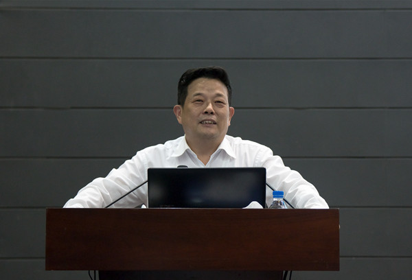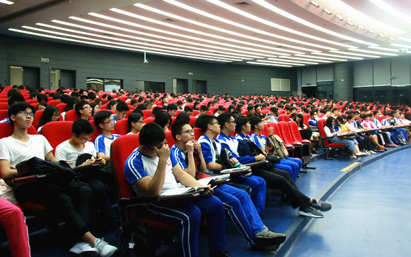陈新引用英国著名经济史和经济统计学家安格斯·麦迪森有关中国的历史数据,指出只有创新才能强国,正如习近平总书记所强调的,“中国如果不走创新驱动发展道路,新旧动能不能顺利转换,就不能真正强大起来。”十九大报告指出,创新驱动发展战略大力实施,创新型国家建设成果丰硕。他一一为同学们精要地介绍了这些重大科技成果,列举了体现中国深度、中国速度、中国长度、中国精度、中国强度的一系列令世界赞叹的成果,并介绍了今年全国“两会”政府工作报告过去五年工作取得的历史性成就,特别就习近平总书记“四个走在全国前列”作了深入解读,强调了大学新时代的使命和责任。