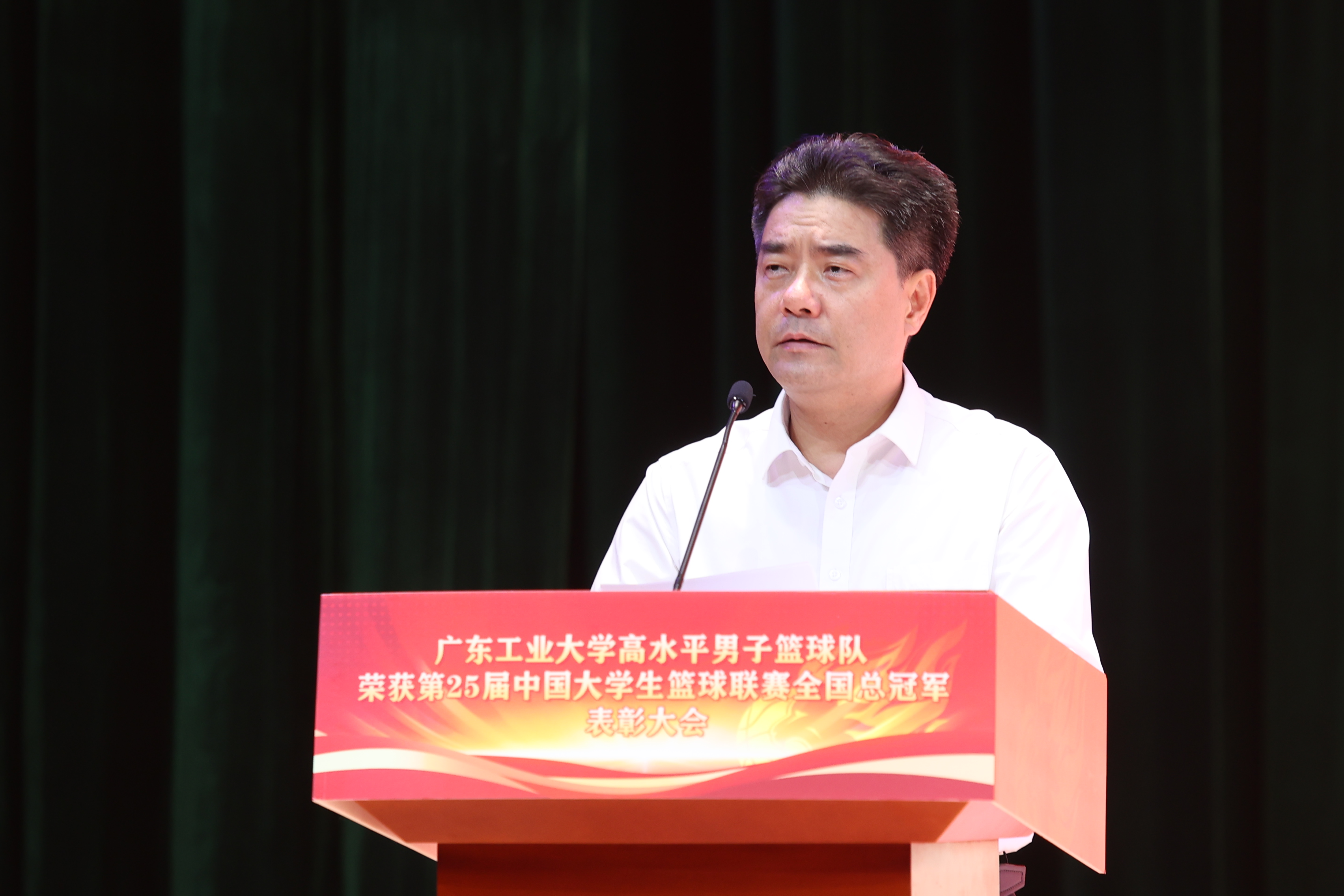广东省委委员、学校党委书记胡钦太,校长、学校体育运动委员会主任邱学青,广东省教育厅二级巡视员邱克楠,广东省体育局党组成员、副局长林瑛,共青团广东省委副书记范春,广东省篮排中心书记、CBA广东队主教练、广东省青联副主席、广工校友杜锋,广东省篮球协会会长刘克军,学校党委副书记朱蔚蔚,校党委常委、副校长王成勇、栾天罡,副校长余林等领导嘉宾出席表彰大会。校党委副书记、学校体育运动委员会副主任陈卓武主持会议。