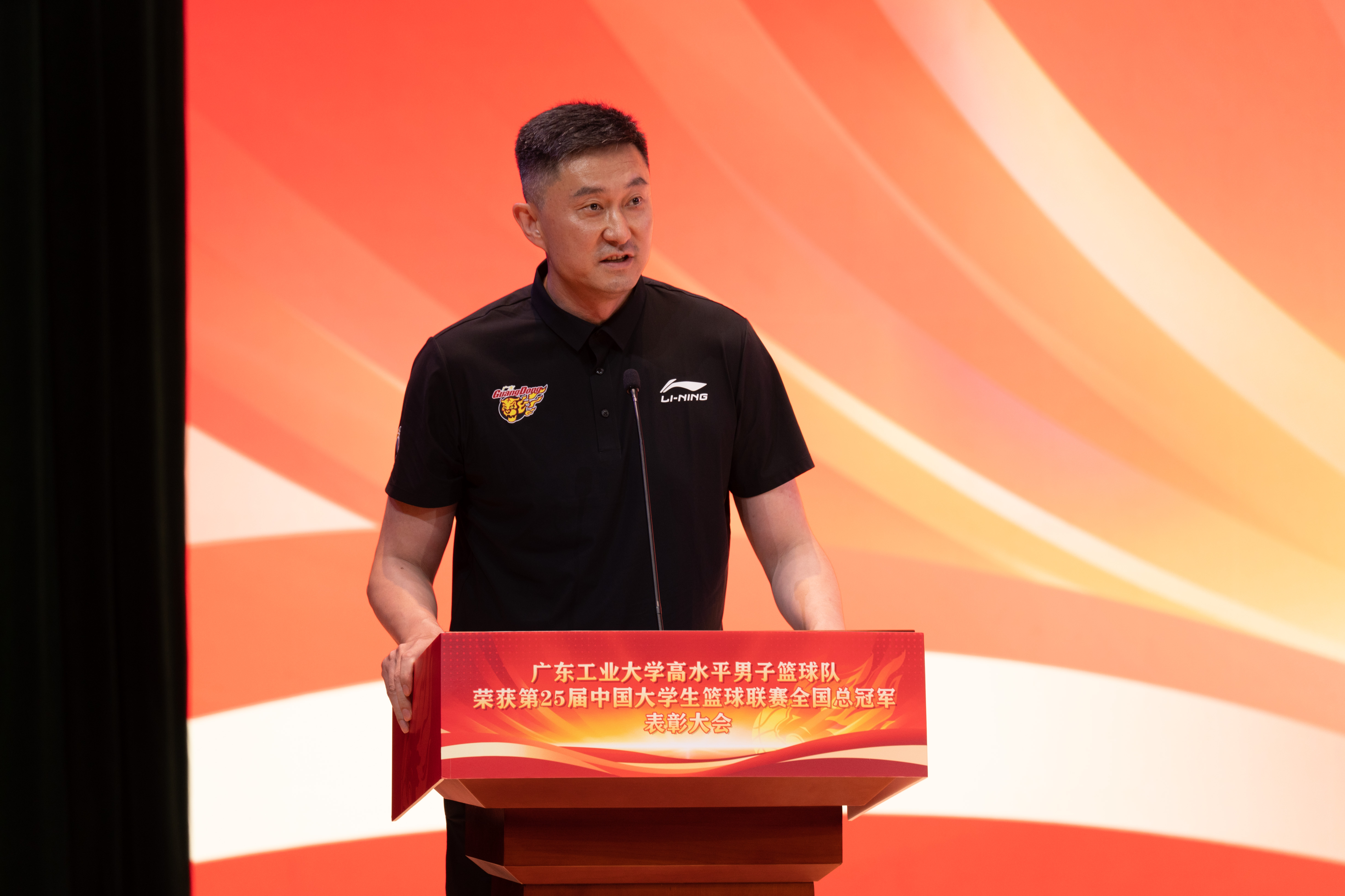 “看到师弟们夺得校史上CUBAL第一块金牌,我觉得比自己带队拿到CBA总冠军还开心、还兴奋。”校友代表杜锋感慨道。他回忆了在广工的成长发展,希望男篮将士们继续书写精彩人生,为广工、广东增光添彩。