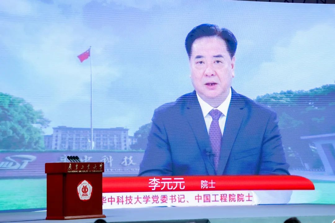 华中科技大学党委书记、中国工程院院士李元元视频致辞。他表示,两校有着深化合作交流的深厚基础和广阔前景,将以本次发展大会战略合作为新的契机,加强交流合作,携手共创美好未来。他相信广工将不负使命,走出一条高质量发展的创新之路,为粤港澳大湾区科技创新中心和高水平人才高地建设提供更大的支撑、做出更大的贡献。