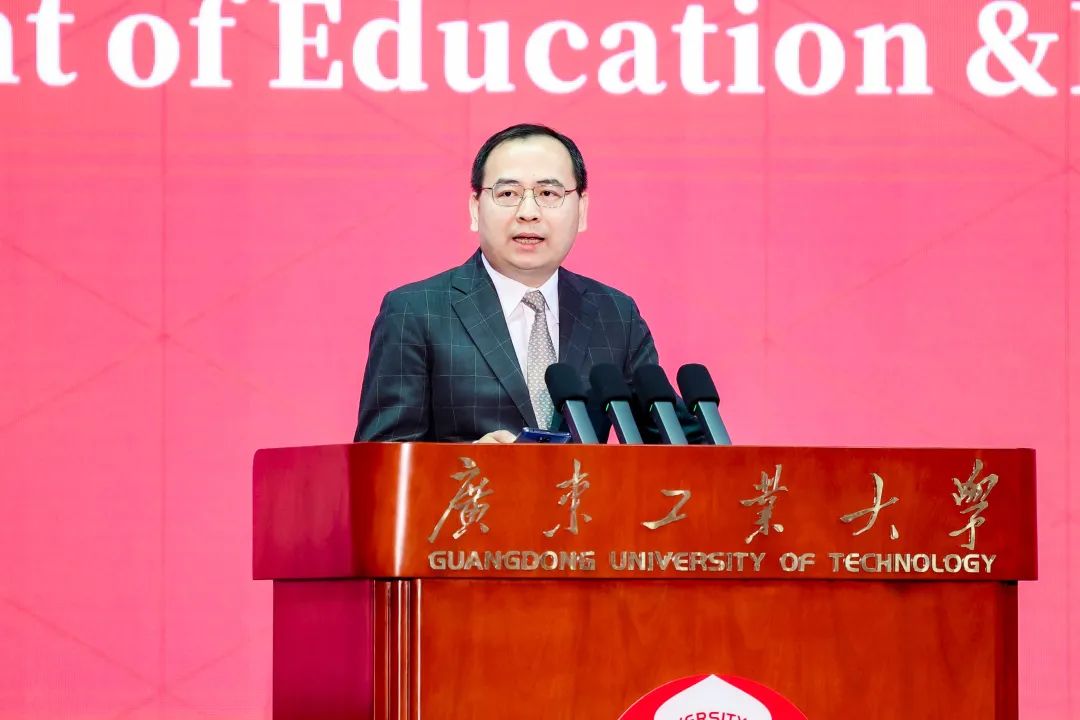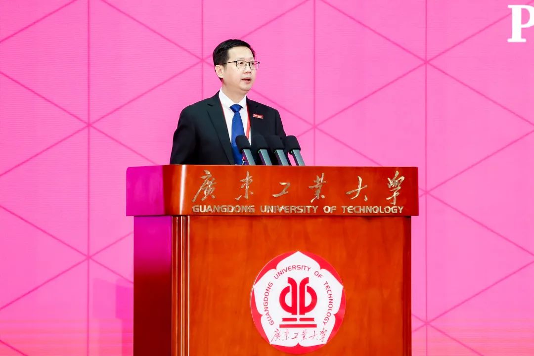 华为中国政企教育医疗系统部总裁卢永平致辞。他回顾了广工与华为的合作历程,双方共同打造了全国高校华为“智能基座”产教融合协同育人基地的建设示范工程和全国首个全光校园网络的标杆样板。为努力实现高水平科技自立自强,为中国自主创新所需的基础研究与关键技术创新提供人才和智力支撑,华为将继续努力与广工深化合作:深化产教融合,培养创新人才;开展科教融合,促进创新发展;引领教育创新,共建“智慧广工”。