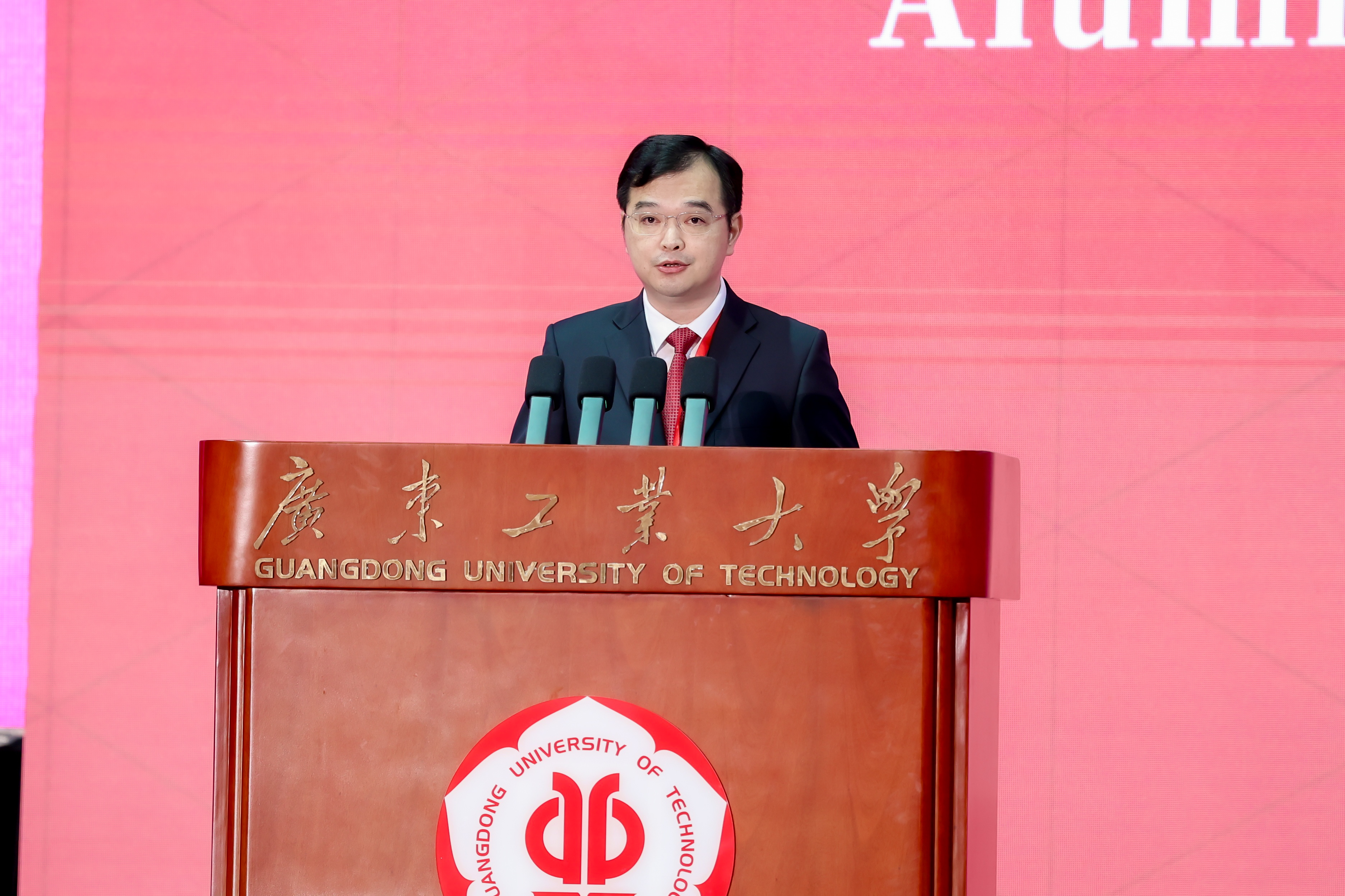 1997届校友、广东嘉元科技股份有限公司董事长廖平元代表校友向母校本科办学65周年表示热烈祝贺并致以美好祝愿。他饱含深情地向母校“表白”:“一日广工人,一生广工情。”能够见证母校办学实力、社会影响力和国际声誉日益提升他感到非常骄傲与自豪,他表示,在广大校友的成长成才和个人发展之路上都有母校的陪伴和激励,大家将牢记母校之情、汇报母校恩泽,继续弘扬广工校训精神,为国家、社会和广工发展作出更大贡献。