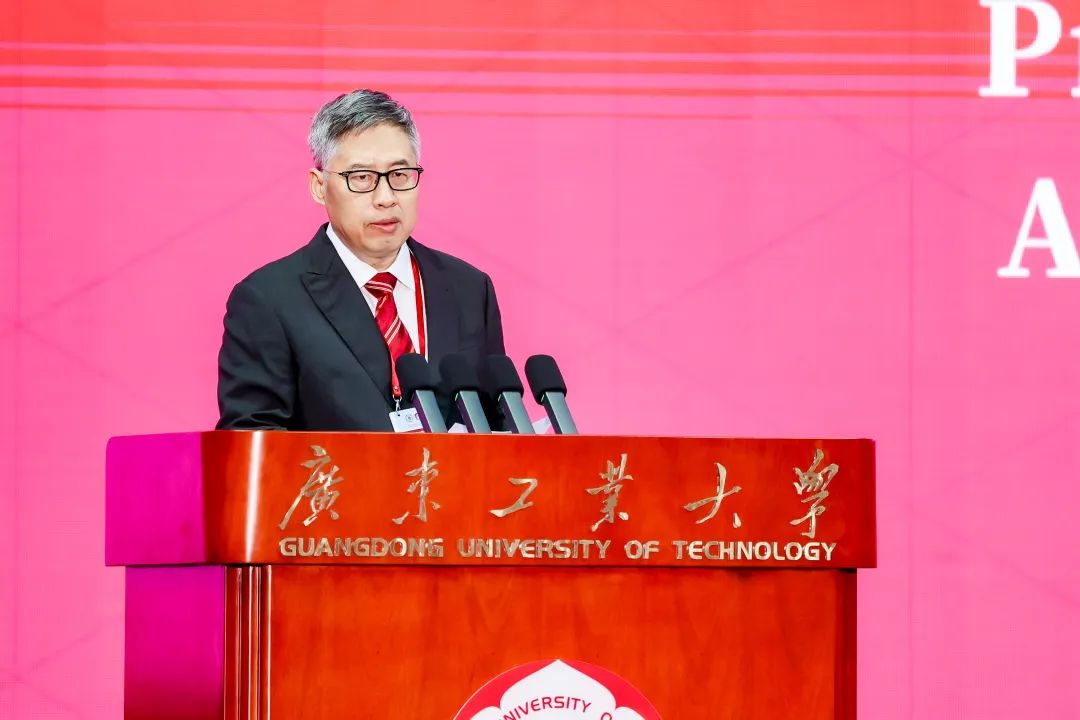 杨志峰院士代表全校教职工为大会致辞。“广工不仅是一所登高望远的学府,更是创新发展的磨砺之地,为广东高质量发展注入强劲动力。”他谈道,“能够加入这支朝气蓬勃的队伍我深感荣幸。”他表示,学校始终落实人才强校战略,用多元化的高水平师资队伍体系,引领教育卓越,学术卓越和文化能力。新征程、新担当,全校教职工将大力传承和弘扬教育家精神,以教师之强夯实教育之基,为建设世界一流的高水平大学而努力奋斗。