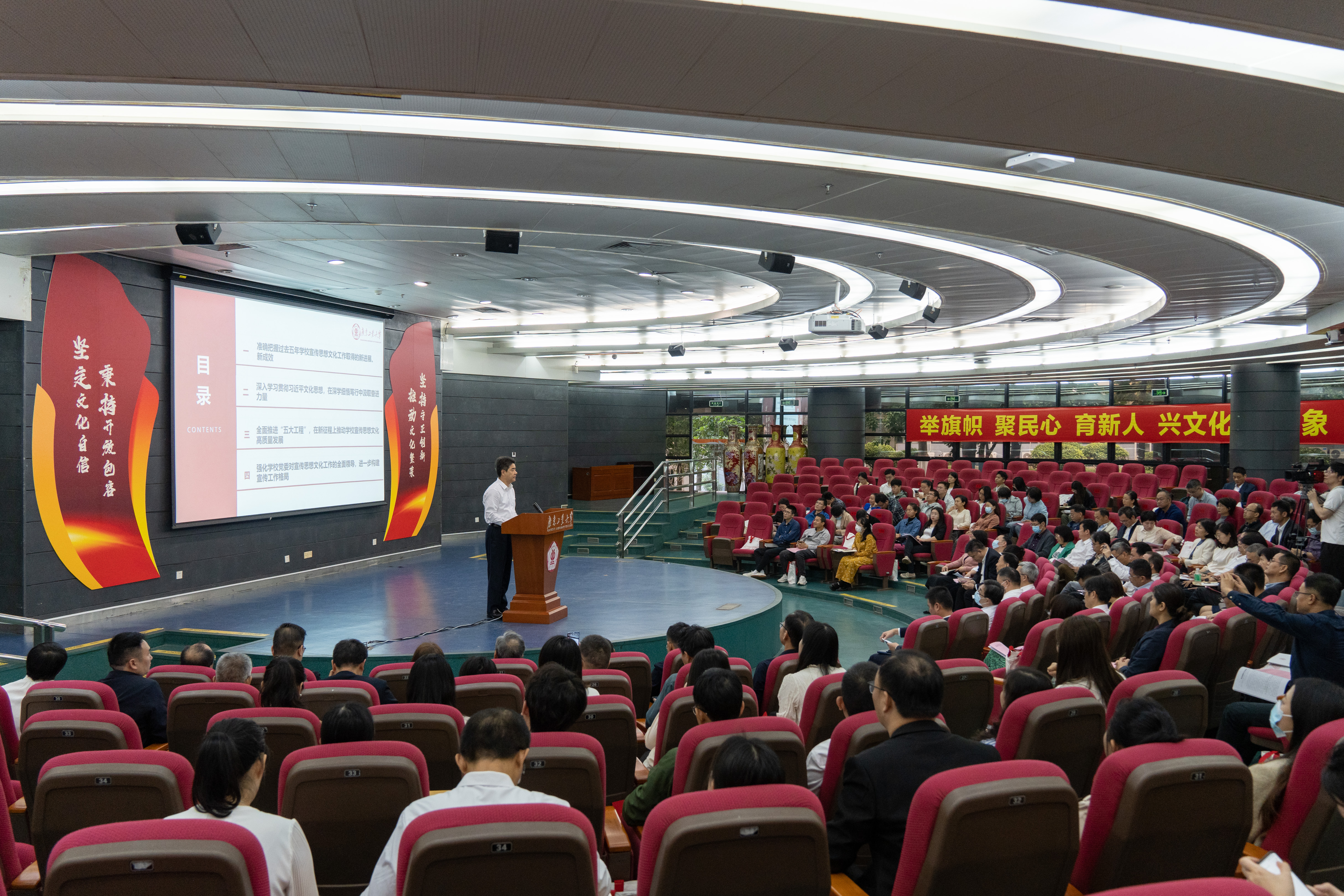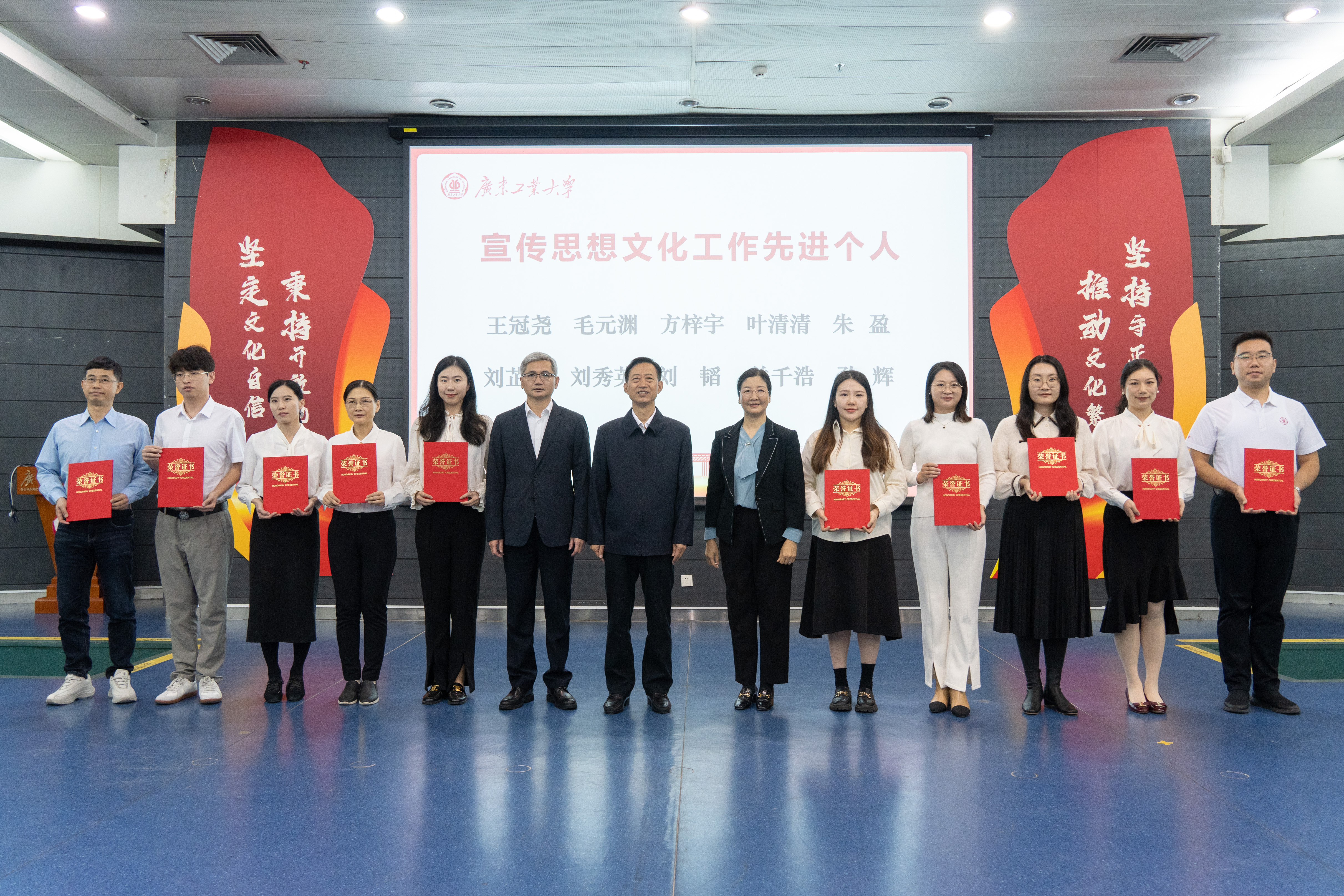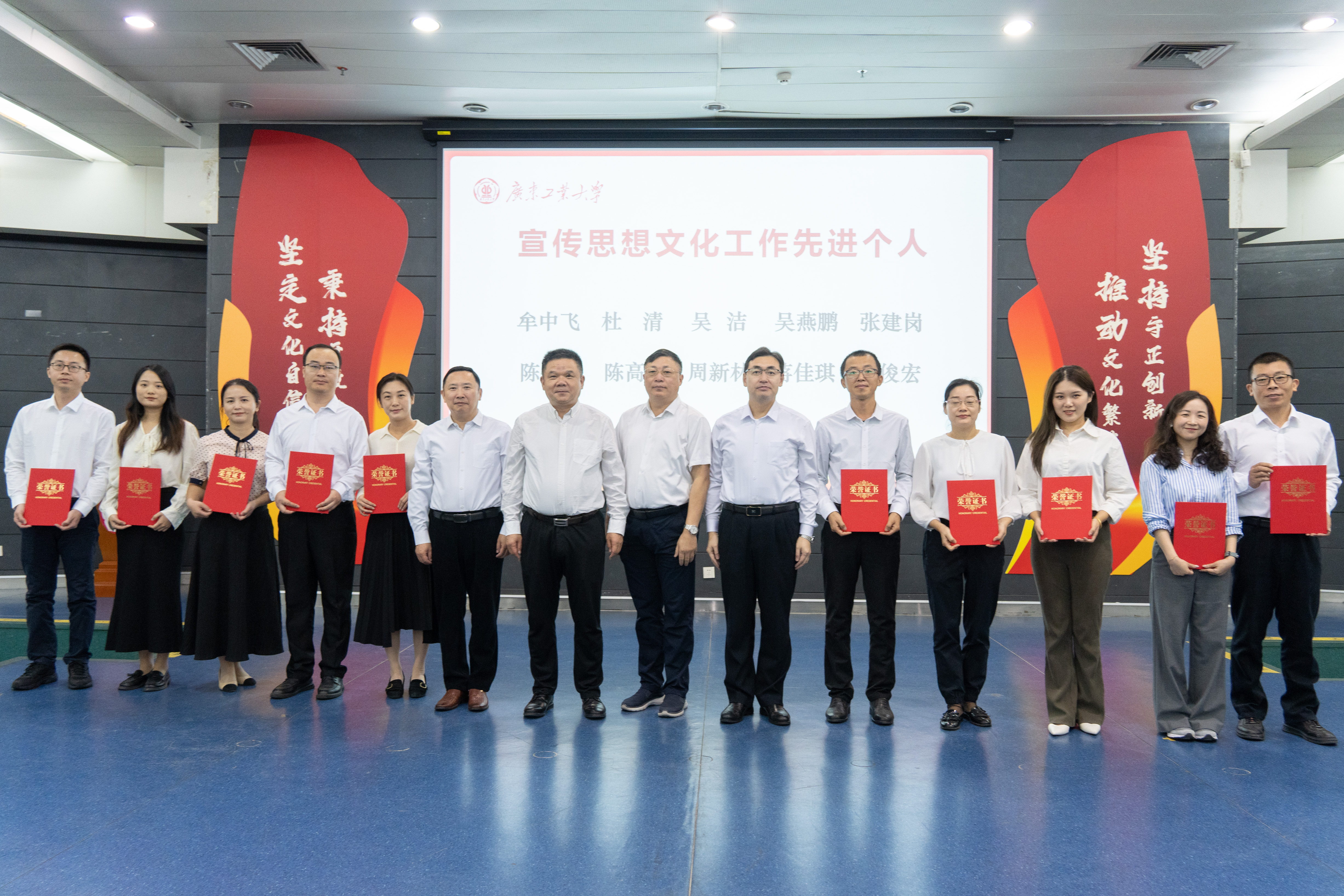 胡钦太在讲话中指出,要深入学习贯彻习近平文化思想,贯彻落实全国和全省宣传思想文化工作会议精神,加快推进学校宣传思想文化工作高质量发展。一要准确把握过去五年学校宣传思想文化工作取得的新进展、新成效;二要深入学习贯彻习近平文化思想,在深学细悟笃行中汲取奋进力量;三要全面推进“凝心铸魂工程”“文明提质工程”“文化浸润工程”“宣传提升工程”“‘护城河’工程”“五大工程”,在新征程上推动学校宣传思想文化工作高质量发展;四要强化学校党委对宣传思想文化工作的全面领导,进一步构建大宣传工作格局。他强调,要为学校高水平创新型大学建设提供坚强思想保证、强大精神力量、有利文化条件,为广东在推进中国式现代化建设中走在前列,展现广工担当、作出广工贡献。