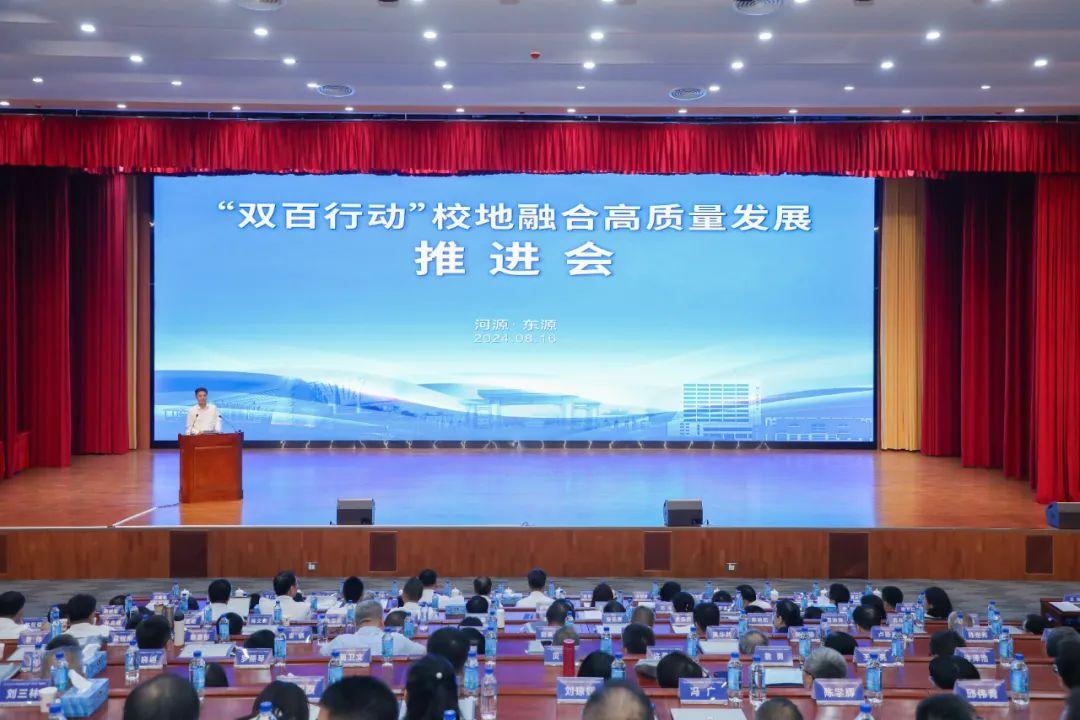 胡钦太向积极投身“双百行动”的每一位同志表示崇高的敬意和诚挚的感谢,并对进一步做好“双百行动”校地融合高质量发展提出三点期望。一是全面整合校地资源,深融互促,高效推进“头号工程”。深化教育链、人才链与产业链、创新链的有机融合,积极探索校地企合作新模式,实现优势互补、资源共享、多方共赢。二是精准强化需求牵引,真抓实干,全面促进产业发展。坚持“输血”与“造血”并举,将学校科技优势同当地特色产业有机融合,加快构建产业结对长效机制,以科技创新助力乡村产业升级,持续增强乡村产业发展活力和经济实力。三是全力激活创新之链,强化协同联动,共同打造结对标杆。将继续深化校地企合作,推动基础研究与产业化开发的有效衔接,打造“双百行动”校地结对新标杆。胡钦太强调,要继续发挥“以工为主、与产业深度融合”的特色优势,紧密围绕东源所需、立足广工所能,将科技与产业深度融合,让创新与活力竞相迸发,坚定不移把助力县域高质量发展作为学校服务社会、贡献国家的重要抓手。