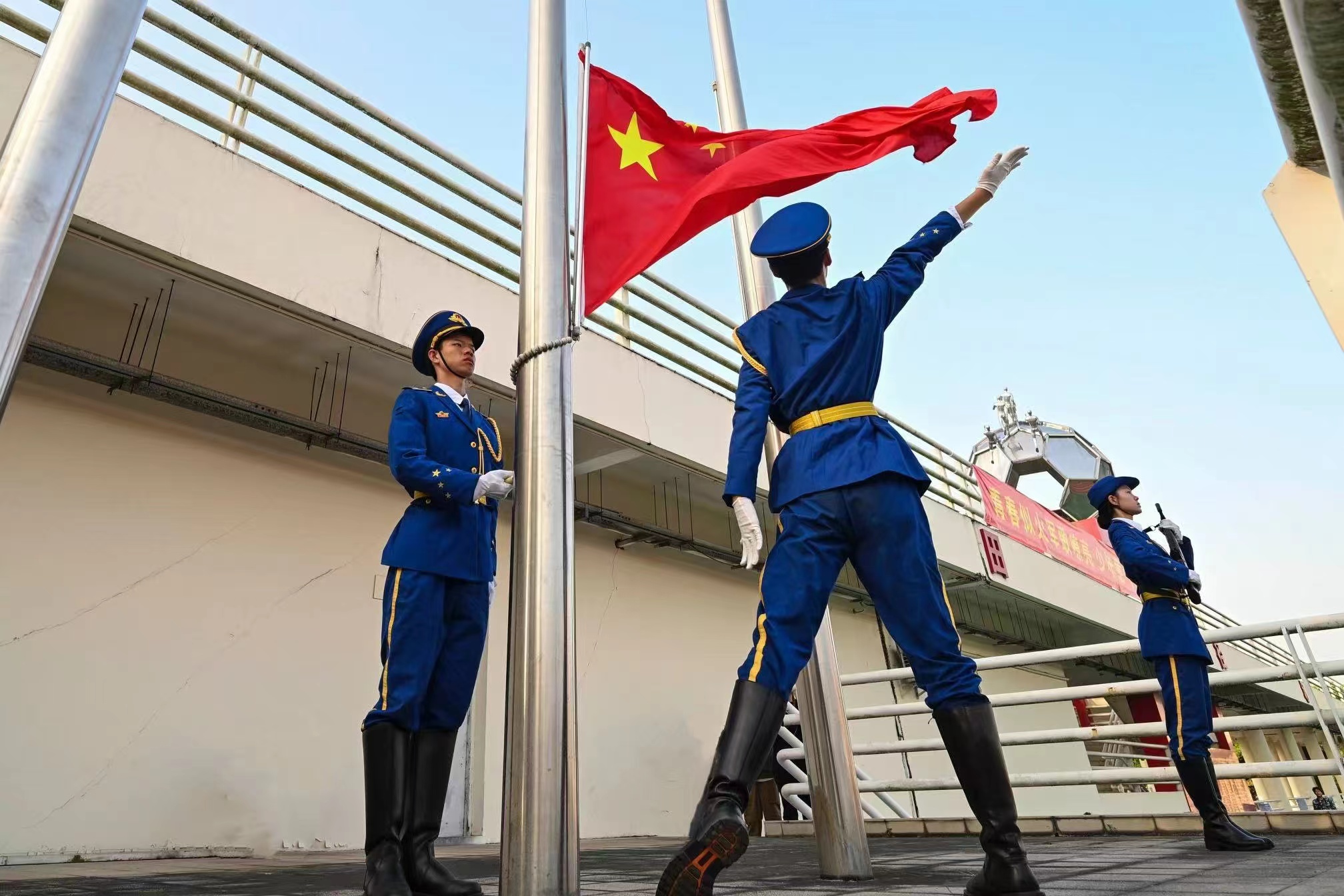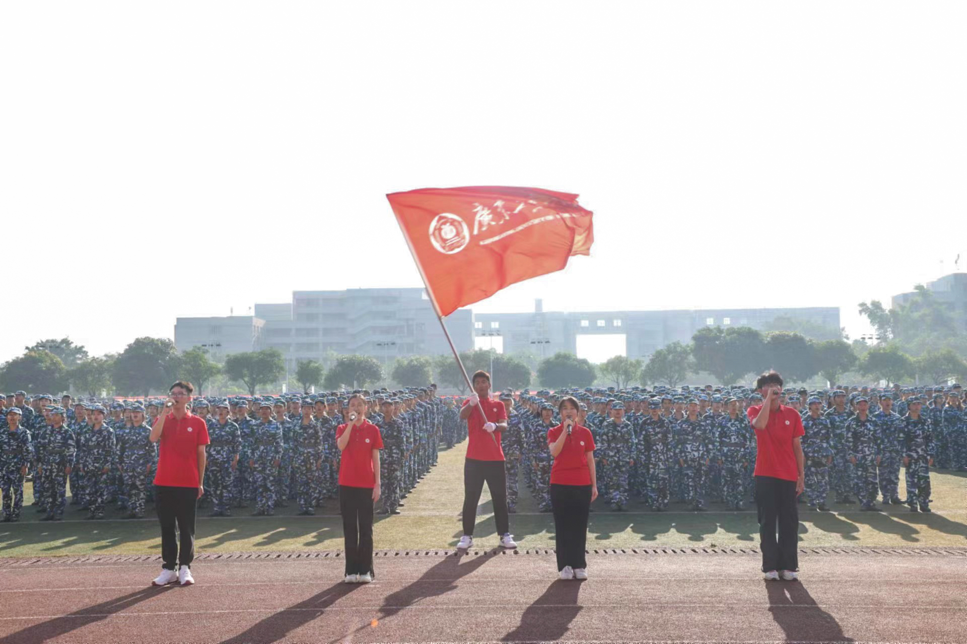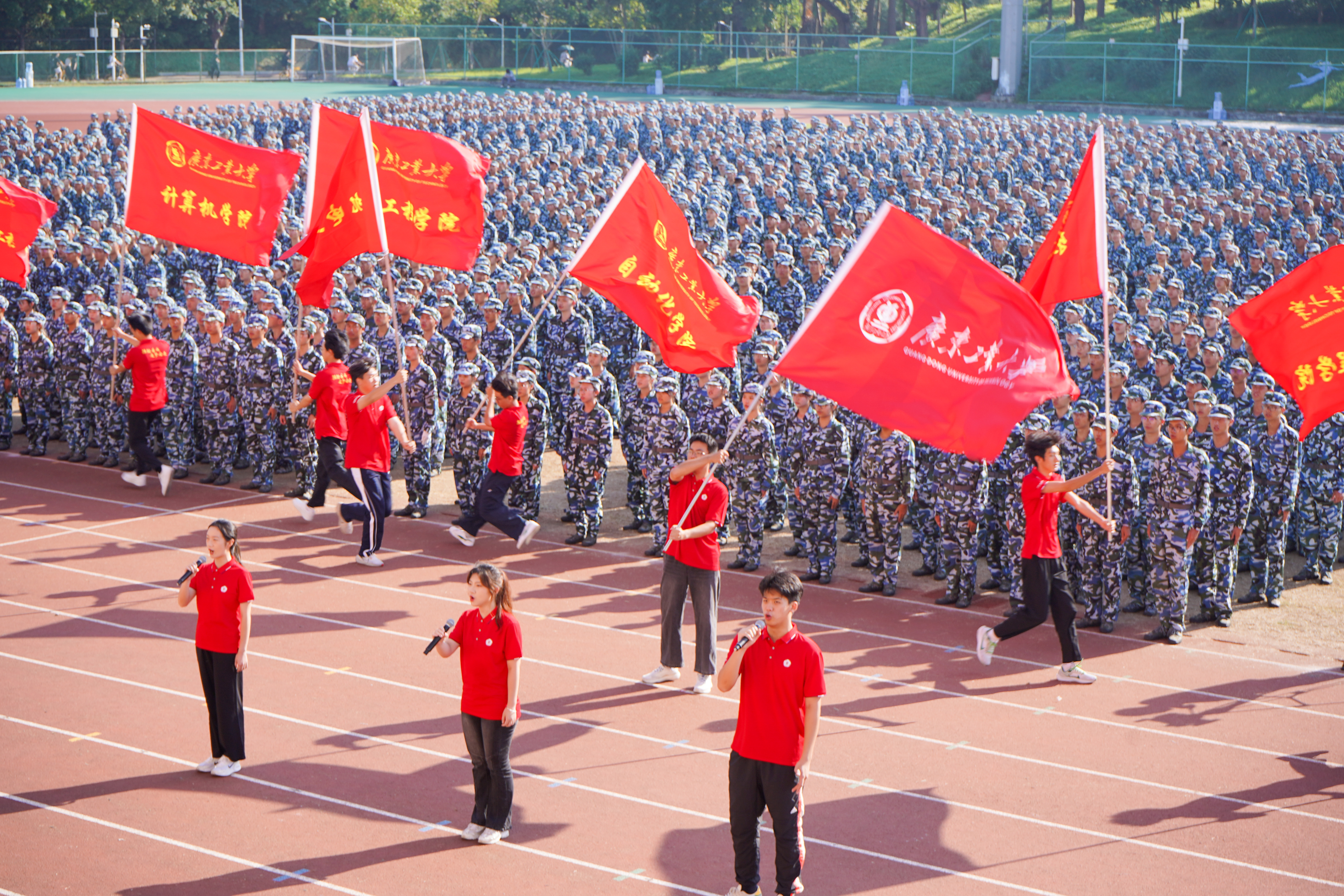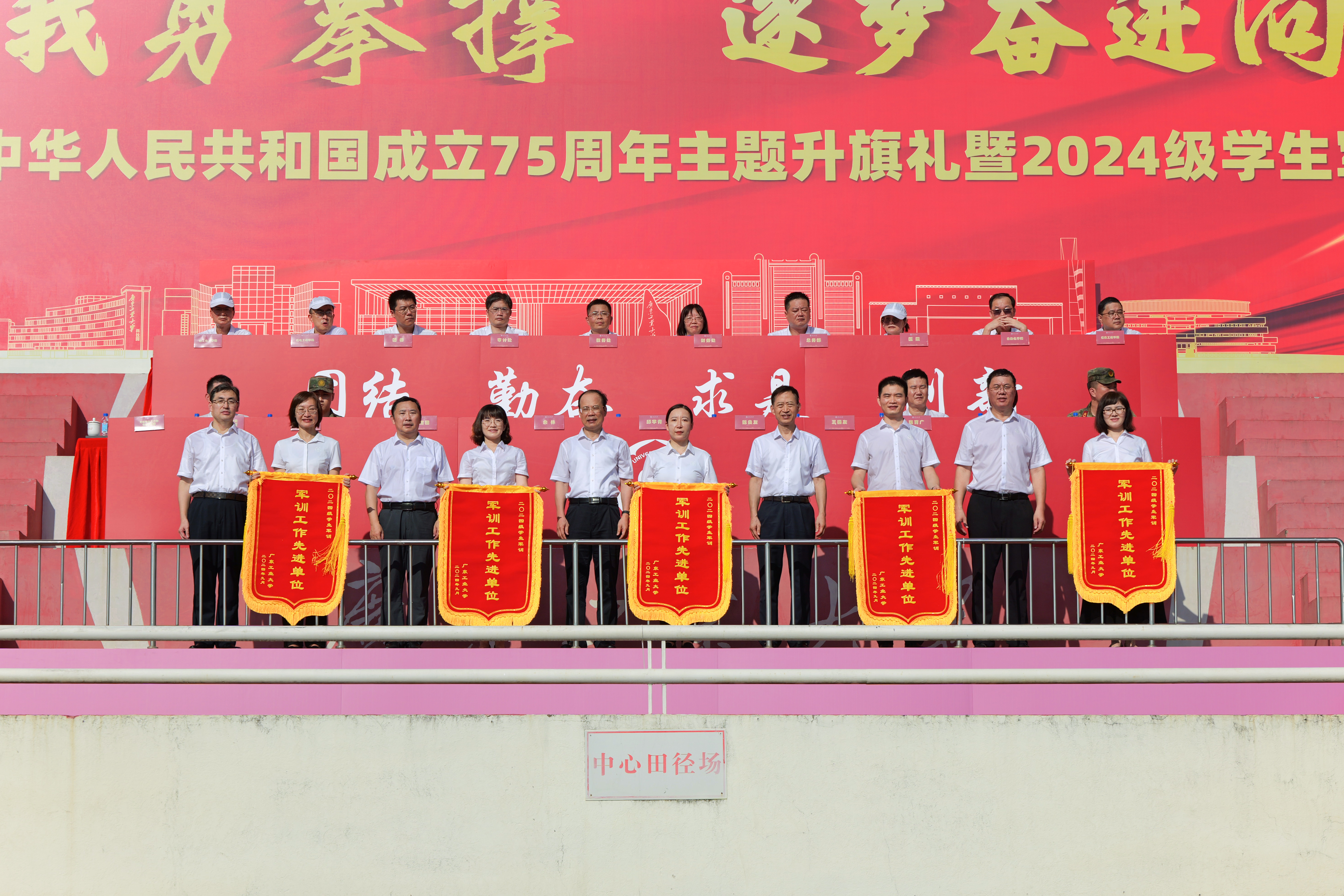 9月30日,星空注册庆祝中华人民共和国成立75周年主题升旗礼暨2024级学生军训总结表彰大会在大学城校区、龙洞校区和揭阳校区举行,同升国旗、共唱国歌,为祖国母亲献上最真挚的告白。东风路校区同学在龙洞校区参会,番禺校区同学在大学城校区参会。一万余名新生经过14天的淬炼与蜕变,以威武的军姿、崭新的风貌、昂扬的精神展示军训成果,随冉冉升起的五星红旗一同表达对祖国的无限热爱。