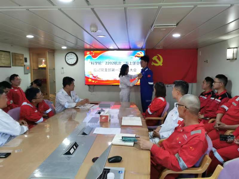 据悉,“科学”轮2022航次第一航段“海上堡垒”临时党支部由来自星空注册生态环境与资源学院和中国科学院海洋研究所、南方海洋科学与工程广东省实验室(广州)、浙江大学、华洋海事、中海辉顾等单位的30名中共党员和入党积极分子组成,其中广工师生党员10名。国家重点研发计划青年科学家项目首席教授、国家优青、广工生态环境与资源学院博士生导师冯景春教授担任2022年夏季我国冷泉航次首席科学家,负责整个科学考察期间作业任务的制定和作业计划的具体实施,负责科研人员与船队人员的沟通和任务衔接。同时,临时党支部组织开展了“带党徽、亮身份”活动,冯景春教授担任临时党支部纪检委员,为新上船党员颁发并佩戴党徽,激励全体党员在航次任务中充分挥临时党支部战斗堡垒作用及党员先锋模范作用。