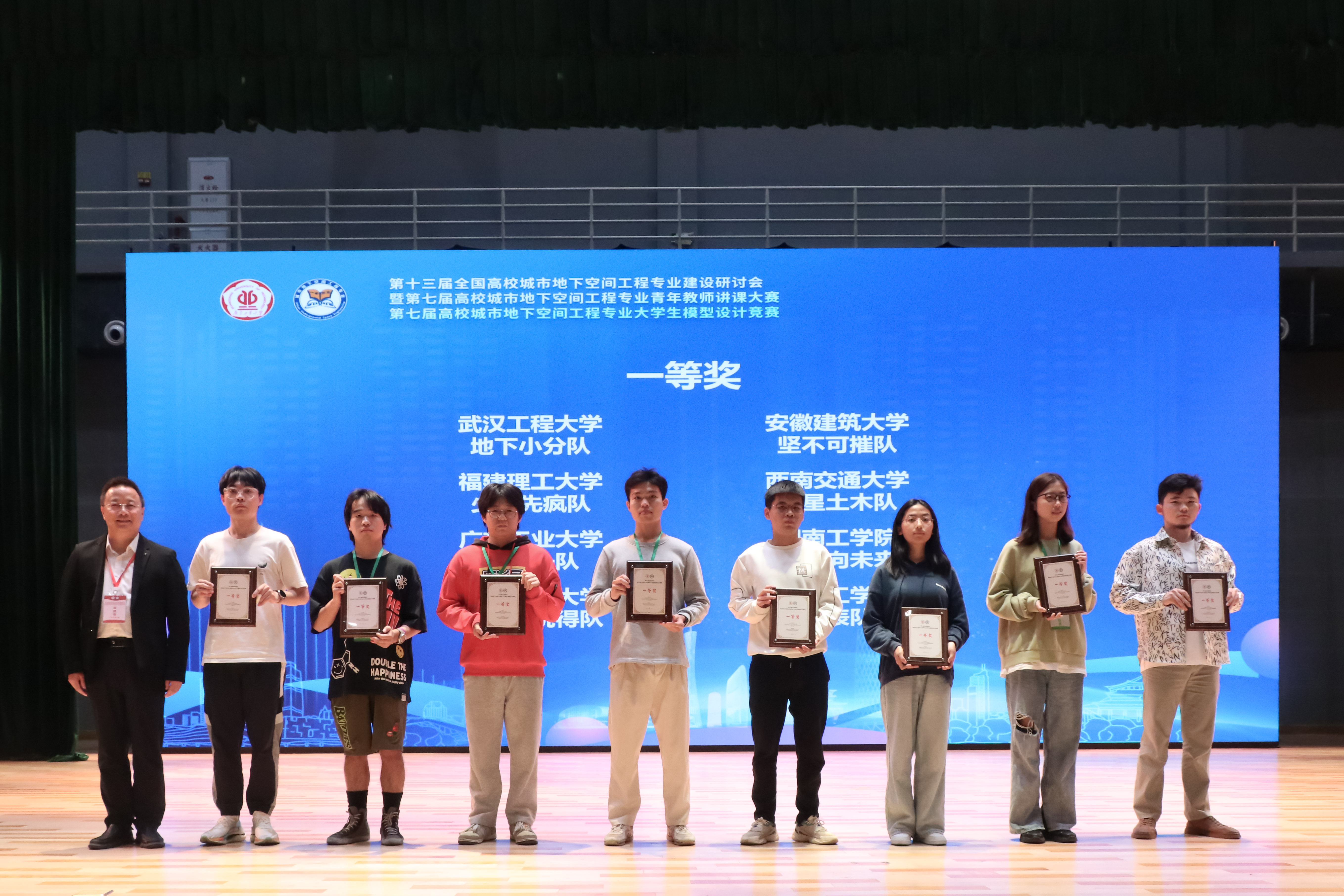 在全国高校城市地下空间工程专业青年教师讲课大赛和全国高校城市地下空间工程专业大学生模型设计大赛中,共有29名青年教师获奖,56支学生参赛队获佳绩。在闭幕式上先后进行了全国城市地下空间工程专业2023年优秀毕业生表及竞赛颁奖。学校土木与交通工程学院韩泽军、冯德銮两位教师获讲课大赛全国一等奖,两支学生参赛队分别获全国一等奖和三等奖。