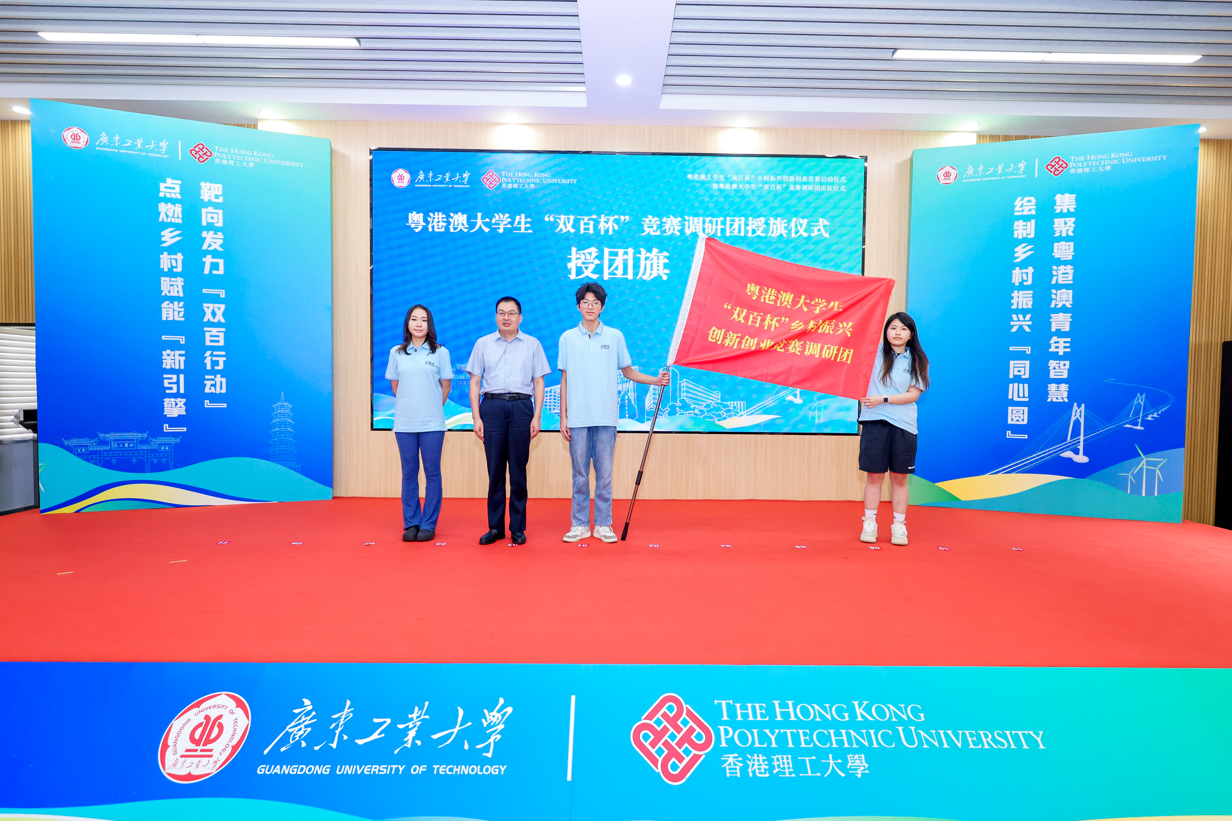 仪式为粤港澳大学生“双百杯”竞赛调研团授团旗,为五个调研团小分队授分队牌。调研小分队将围绕县域发展需求,奔赴东源、郁南等县开展实地调研考察工作,为参赛项目收集第一手资料。嘉宾共同点亮按钮,粤港澳大学生“双百杯”乡村振兴创新创业竞赛正式启动。“我们期待能通过参加竞赛助力乡村发展,三地青年携手为推进中国式现代化建设贡献力量。”调研团学生代表、香港岭南大学王廉同说。