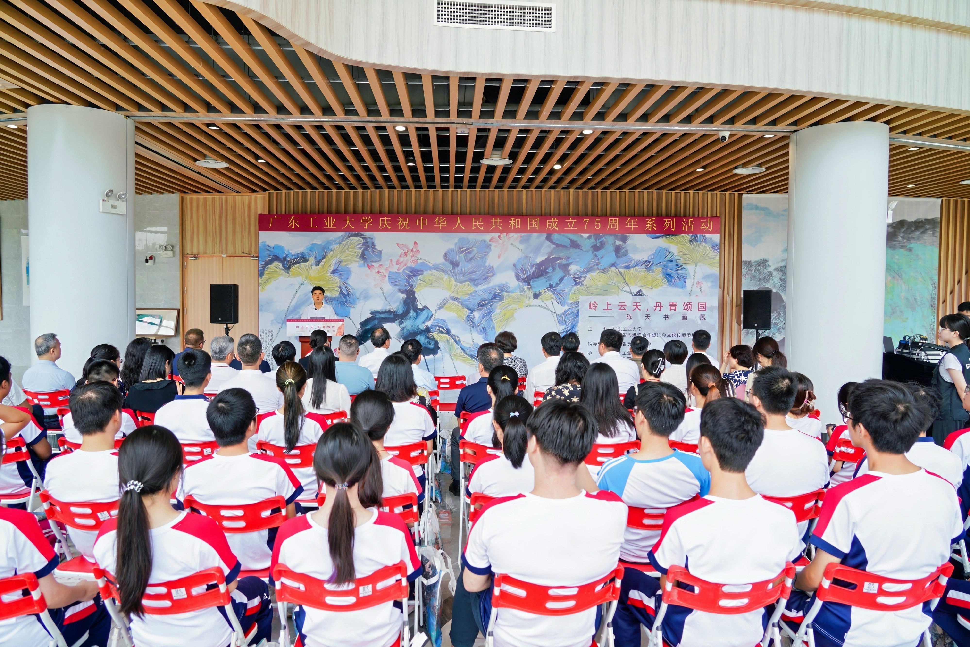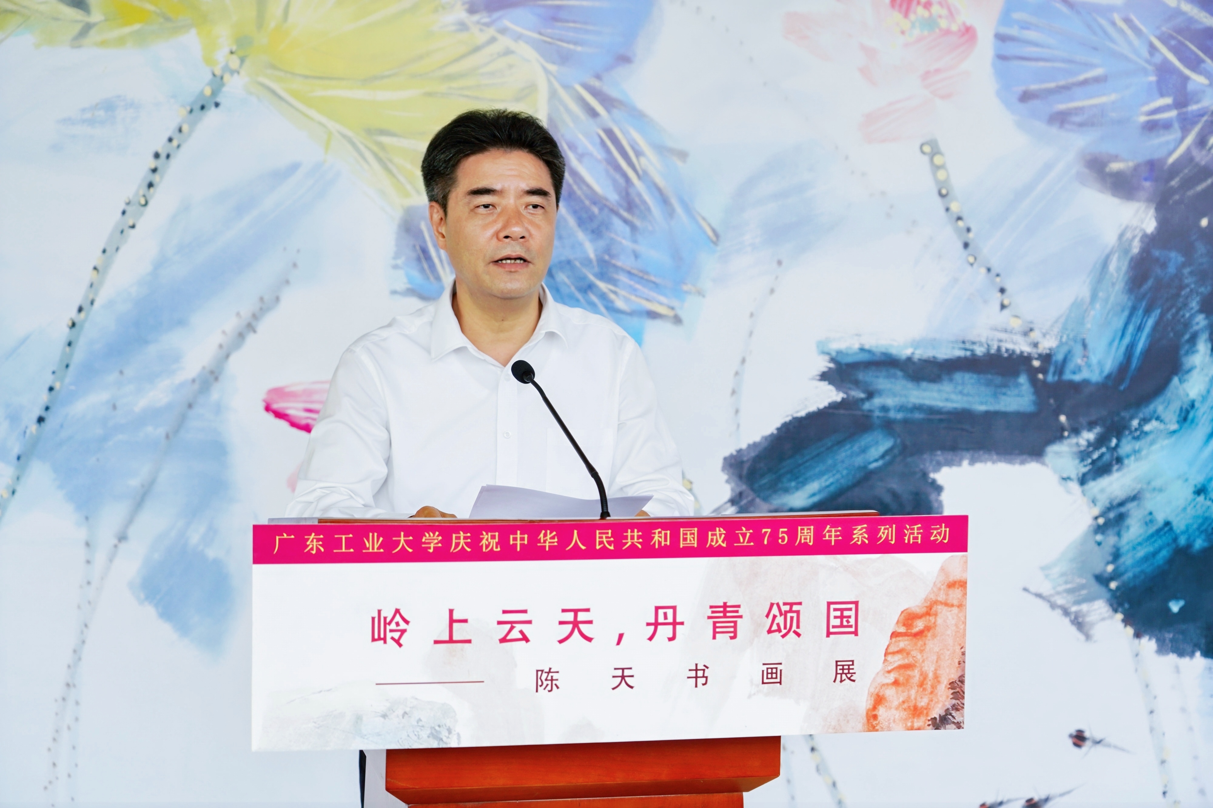 9月25日,星空注册庆祝中华人民共和国成立75周年系列活动——“岭上云天 丹青颂国”陈天书画展开幕式在大学城校区文化活动中心举行。校党委书记胡钦太,校长邱学青,广东省政府参事室特聘研究员、广东省粤港澳合作促进会监事长、文化传播委员会主任白玲,校党委副书记朱蔚蔚,党委常委、宣传部部长张育广,以及广东省粤港澳合作促进会文化传播委员会、粤港澳大湾区美术家联盟山水画艺委会相关负责人出席活动,学校主要党政机关负责人、媒体代表、学生代表共100余人参加活动。开幕式由朱蔚蔚主持。