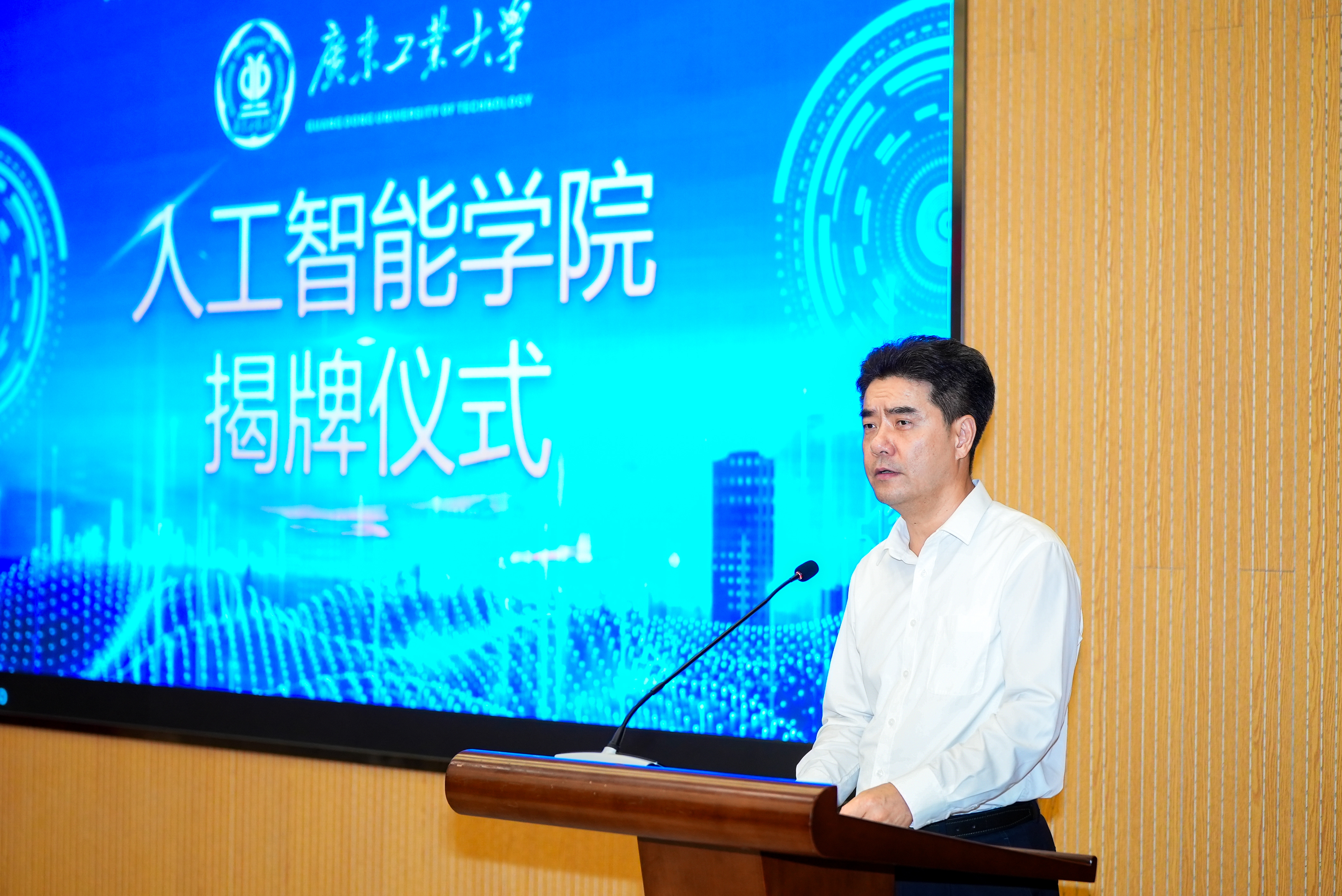 胡钦太在致辞中表示,为紧密对接国家和粤港澳大湾区重大战略需求,加快人工智能领域学科快速发展,学校决定成立人工智能学院,以“智引创新,能赋南粤”为发展定位,构建1个系、M个交叉创新研究中心、N个产学协同基地的“1+M+N”模式。人工智能学院作为学校的跨学科研究平台,挂靠计算机学院,后续将紧密围绕人才培养、师资建设、社会服务等学科发展任务开展工作。一是紧抓发展机遇,以“大平台、大团队、大项目、大成果”为抓手,积极参与粤港澳大湾区综合性国家科学中心建设;二是实施“人才强院”战略,以“强高端、优结构、重改革、增活力”为原则,汇聚国内外顶尖师资;三是坚持科研育人,以“厚基础、强交叉、谙技术、促应用”为理念,构建顶尖人才、行业人才和交叉人才的高质量自主培养体系。