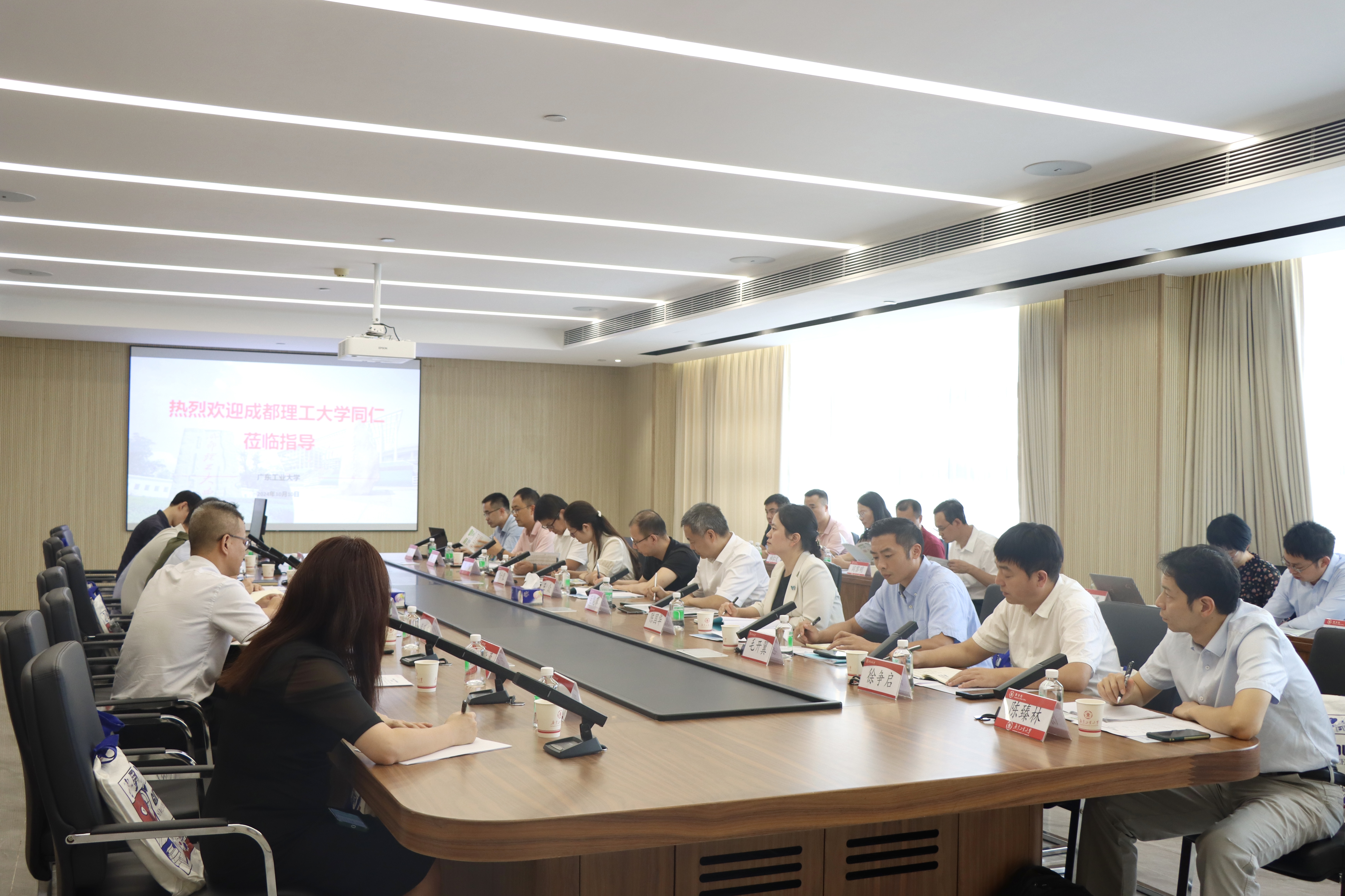 余林对巨能攀一行的来访表示热烈欢迎,并对我校发展历史、学科特色、办学目标、招生就业等基本情况作了简要介绍。他希望双方与会各职能部门进一步加强交流,更好推动两校事业高质量发展。巨能攀简要介绍了成都理工大学的基本情况及本次调研交流的目的,并希望以此为契机,借鉴广工的先进经验,加强两校交流合作。
