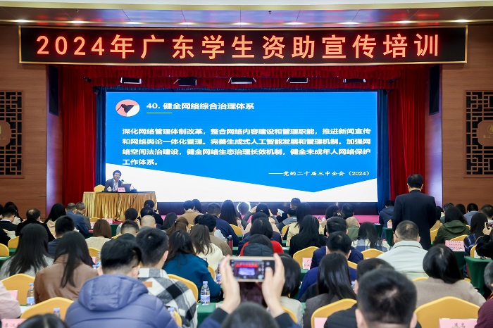 12月26日,由省教育厅主办,广工承办的2024年广东学生资助宣传培训在广州东山宾馆会议中心举办。省教育厅党组成员、副厅长邵允振,省高等学校奖学助学工作专业委员会理事长、广工党委副书记陈卓武,省教育厅基建财务处(学生助学工作管理办公室)、广工党委学生工作部负责人出席开班仪式。省教育厅相关处室(单位)、各地级以上市教育局、各普通高校学生工作部(处)相关负责同志共200余人参加培训。培训期间,广东省高等学校奖学助学工作专业委员会2024年度理事长会议同步召开。