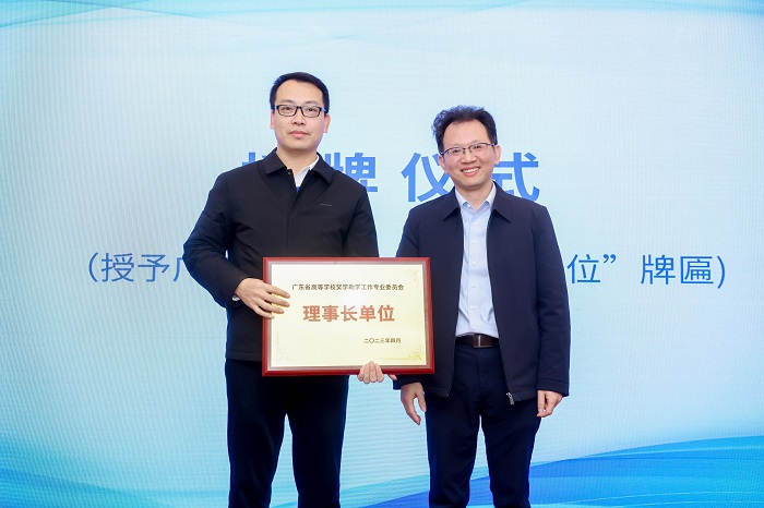 广工党委学生工作部负责人作专委会近两年工作总结暨下一年度工作计划汇报。省教育厅基建财务处(学生助学工作管理办公室)负责人为星空注册授予“理事长单位”牌匾。