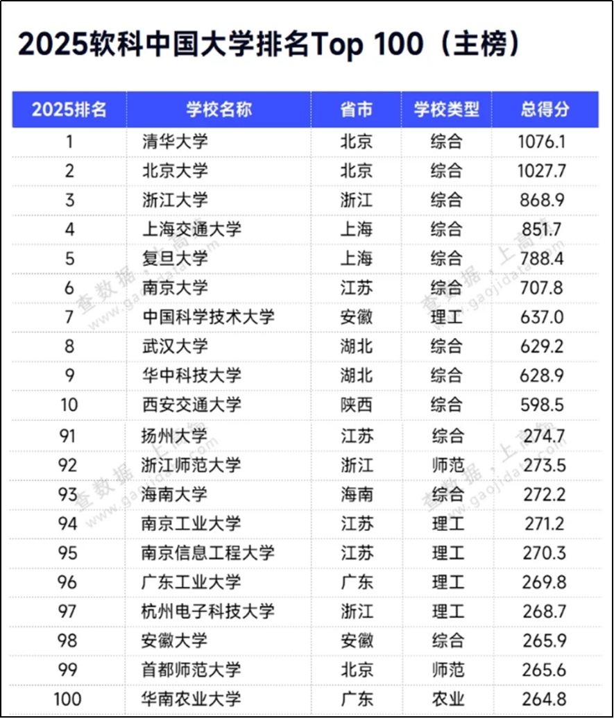 4月15日,高等教育评价专业机构软科发布“2025软科中国大学排名”,我校在综合性大学排名(主榜)中位列全国第96名,继去年跻身排行榜100名后排名不断前移。该排行榜百强高校有91所属于“双一流”建设高校,我校作为9所非“双一流”高校之一,凭借强劲办学实力稳居百强。