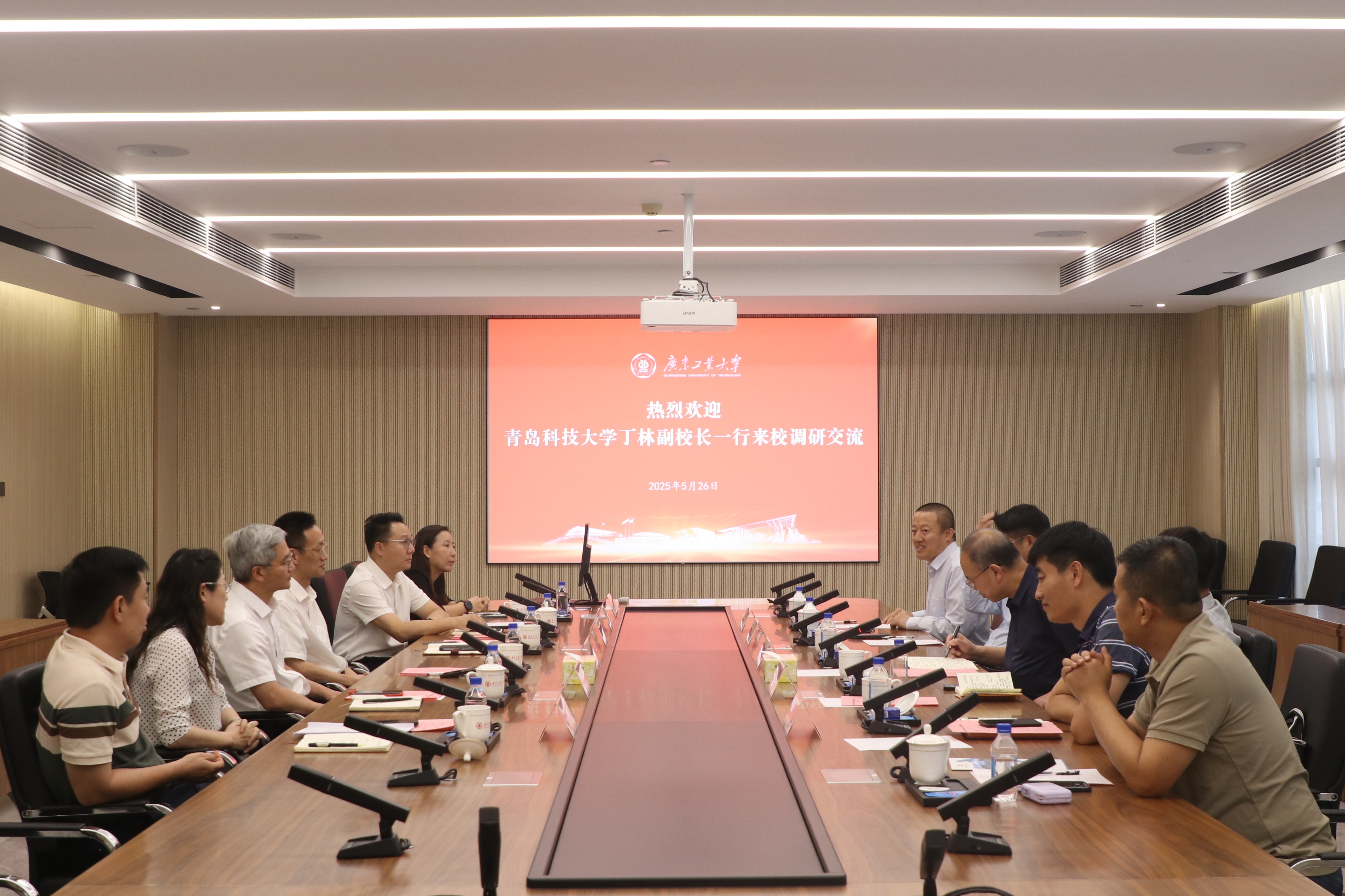 5月26日,青岛科技大学副校长丁林一行7人到广工调研交流。学校党委副书记陈卓武出席座谈会,党委学生工作部、机电工程学院、材料与能源学院、对外联络与校友事务办公室等单位相关负责同志参加交流。双方在行政楼602会议室围绕学校辅导员队伍建设、学生日常教育管理、学生就业指导及校友工作等方面展开深入探讨。
