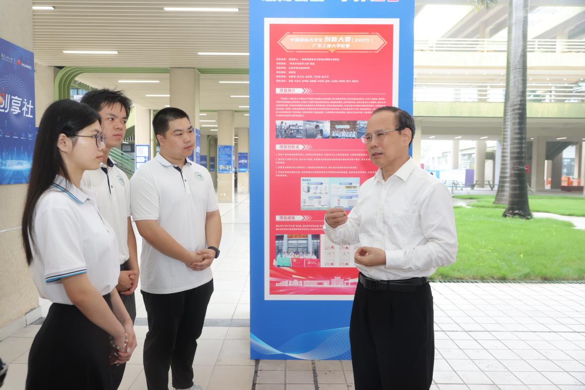 自大赛启动以来,学校高度重视、统筹推进。校长邱学青多次寄语参赛师生,勉励大家磨砺“敢闯会创”的精神品质,以创新精神武装头脑,以参赛为契机充分展示创新成果,在多维交流中优化项目质量,在互学共进中提升创新能力;鼓励师生团队鼓足干劲、奋发向上、全力备赛,展现广工青年务实进取、奋勇攀撑的精神风貌,持续为高水平创新型人才培养注入新动能。校党委副书记陈卓武关心指导大赛组织工作,强调要将大赛作为推动创新创业教育融入人才培养全过程的重要抓手,深入学院开展项目挖掘、培育等专项调研,亲临现场指导学生备赛,为赛事推进提供有力指导。
