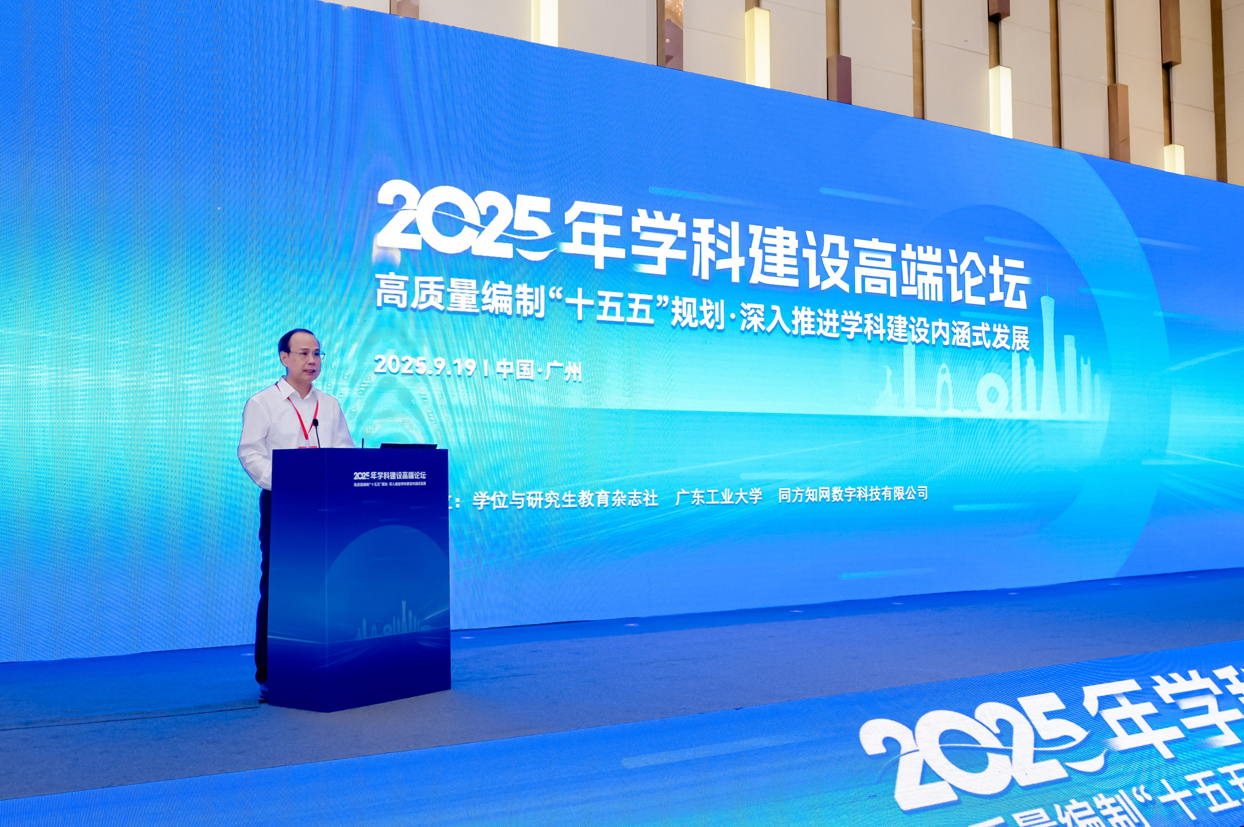 “十五五”时期是我国学科建设迈向高质量发展的关键五年。站在新的历史起点上,论坛以“高质量编制‘十五五’规划,深入推进学科建设内涵式发展”为主题,旨在汇聚多方智慧,共同探索“十五五”期间一流大学与学科建设的新路径、新方法。广工校长邱学青、学位与研究生教育杂志社社长周文辉、同方知网副总经理柯春晓为论坛致辞。