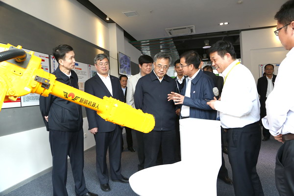 在机器人展厅,胡春华在新鹏机器人公司的展位前驻足,详细了解有关机器人喷釉、修胚、码垛等研发和产业化方面的细节问题。当得知我校机电工程学院秦磊博士后是该公司负责人时,胡春华很高兴地说:“我们的高校除了集聚人才,也要扩散人才,让他们在社会生产这片更加广阔的天地有更多的作为。”