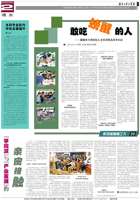 作为我校的优势专业,机械类人才培养模式的改革受到了大家的关注,“传统专业怎么改?小修小补起不了明显作用,我们就是要敢于尝试,也要敢于吃螃蟹!”谈起专业改革, 年逾花甲的郭钟宁教授话语掷地有声。专业改革一直是他和学院努力的方向,2014年,学院集结各方面改革成果,申报《地方工科院校机械类专业特色人才培养模式的改革与实践》课题,由于“形成了具有区域特色的工程应用型人才培养体系。对国内相关高校的机械类专业具有很好的示范作用”,该课题成功获批为省级教学成果奖一等奖。最近,校报对课题组进行了专题采访,感受到了这群“机电人”对人才培养改革敢为人先的勇气和求真务实的付出。