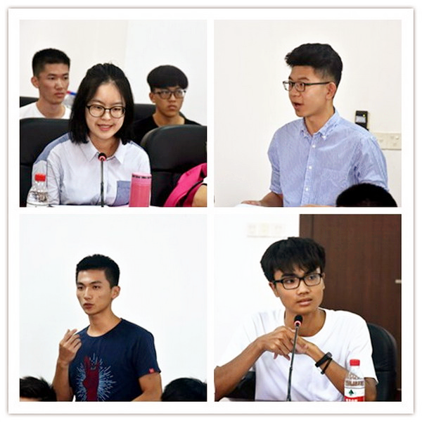 交流会上,轻工化工学院“红色足迹”队、国防生队,外国语学院“百色印记青年魂”队分别进行了优秀作品的分享交流。在座全体师生共同观看了三支队伍的精彩微视频,视频完整记录了三支队伍体验式教育活动的开展情况。辅导员王雅婷老师和魏源老师向大家介绍了开展体验式教育的设计思路、内心感触,指出体验式教育其实是一堂生动活泼的思想政治教育课,使立德树人达到“润物细无声”的效果。来自各体验营团队的同学们踊跃发言,各抒己见。机电工程学院刘华林、轻工化工学院柴家辉、管理学院林诗玲、计算机学院陈祉希、外国语学院周洁芳、材料与能源学院蒋嘉豪等同学做了发言。
