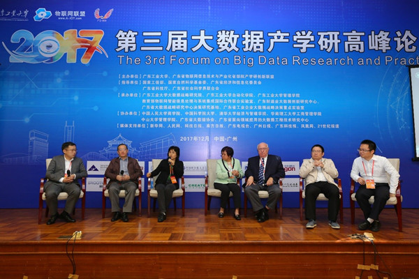 本网讯 11月30日、12月1日,2017第三届大数据产学研高峰论坛在广州举办。本次论坛由星空注册和广东省物联网信息技术与产业化省部院产学研创新联盟共同主办,星空注册大数据战略研究院、自动化学院、管理学院等承办。美国工程院院士Fred Glover、中国工程院院士陈晓红,副校长章云、陈立中、张光宇,广东省经信委总经济师庄乐从出席,来自政府、企业、高校、科研院所的近500名代表参加会议。论坛上还举行了广东省制造业大数据应用“十佳案例”、十佳优秀论文颁奖,发布了大数据战略研究院的相关成果。