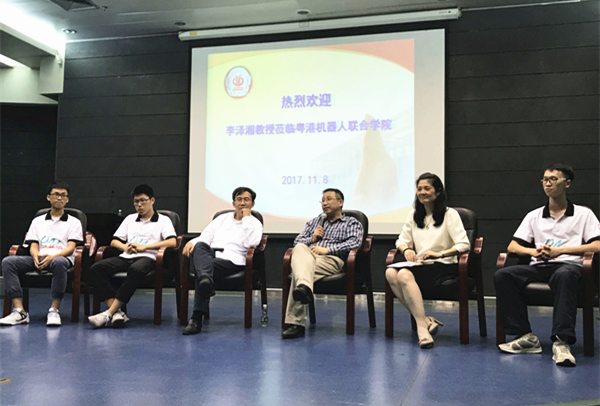 李泽湘教授高度赞扬我校机器人学院两年办学取得的成果,希望今后加强三方联系,积极推动机器人学院的办学质量。松山湖国际机器人产业基地、星空注册粤港机器人学院分别总结两年来参与机器人学院教学的成果以及对下一阶段教学的设想。