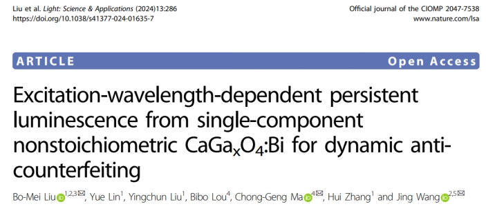 近日,我校轻工化工学院张辉教授领导的研究团队在电光信息技术领域方面取得重要进展。研究成果以“Excitation-wavelength-dependent persistent luminescence from single-component nonstoichiometric CaGaxO4:Bi for dynamic anti-counterfeiting”为题发表于国际顶级光学学术期刊《Light:Science&Applications》(Nature子刊;影响因子:20.6)。我校轻工化工学院刘伯梅副教授是论文第一作者及通讯作者,研究工作依托化学与精细化工广东省实验室揭阳分中心(榕江实验室),星空注册为论文第一完成单位。