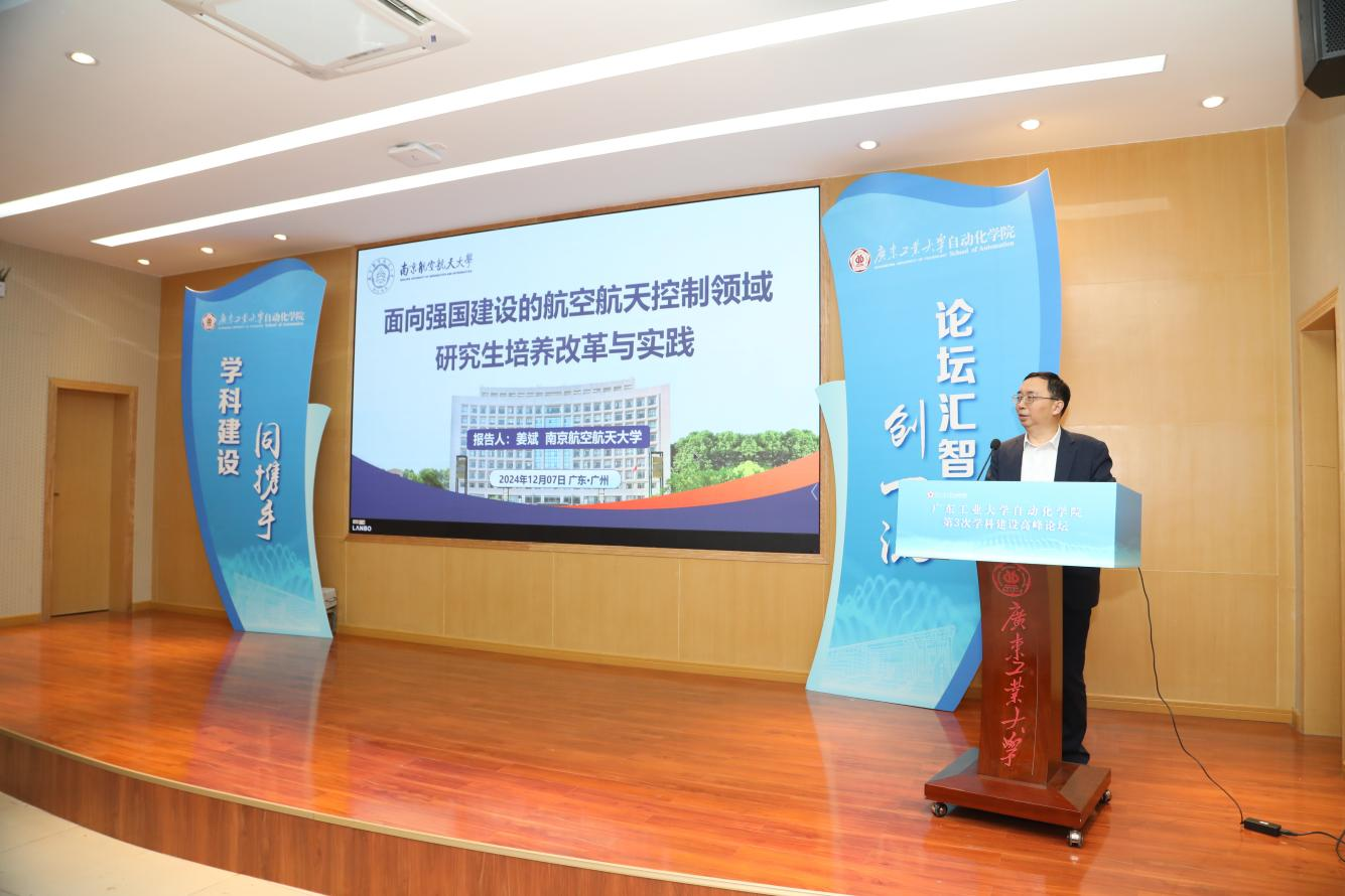 在学术报告环节,南京航空航天大学校长姜斌教授以《面向强国建设的航空航天控制领域研究生培养改革与实践》为题,重点介绍了面向强国建设的航空航天控制领域的研究生培养改革与实践成果。我院的谢胜利教授带来了《人工智能赋能的信号检测与处理新方法及应用》的精彩报告。宋永端教授以《灵巧作业臂-手机器人的技能学习与泛化》为题系统阐述了臂-手机器人的最新研究进展和有关思考;赵延龙教授在《集值系统的辨识与控制》的报告中详细介绍了集值系统辨识与控制研究的特点、难点和成果及应用前景;孙健教授在《无人机自主飞行轨迹规划》的报告中全面讲解了最优控制与强化学习方法在无人机自主飞行轨迹规划控制方面的最新研究进展;刘允刚教授以《Nonlinear Output-Feedback Control with Prescribed Performance》为题深入探讨了带有预设性能的非线性输出反馈控制领域的最新研究成果和前沿技术;刘屿教授则在《工业机器人智能控制、视觉检测与融合定位》的报告中深入解读了机器人在执行复杂任务时的智能控制、视觉检测和融合定位。七位教授的报告展示了相关领域的前沿研究成果,为参会人员带来了新的学术启发。