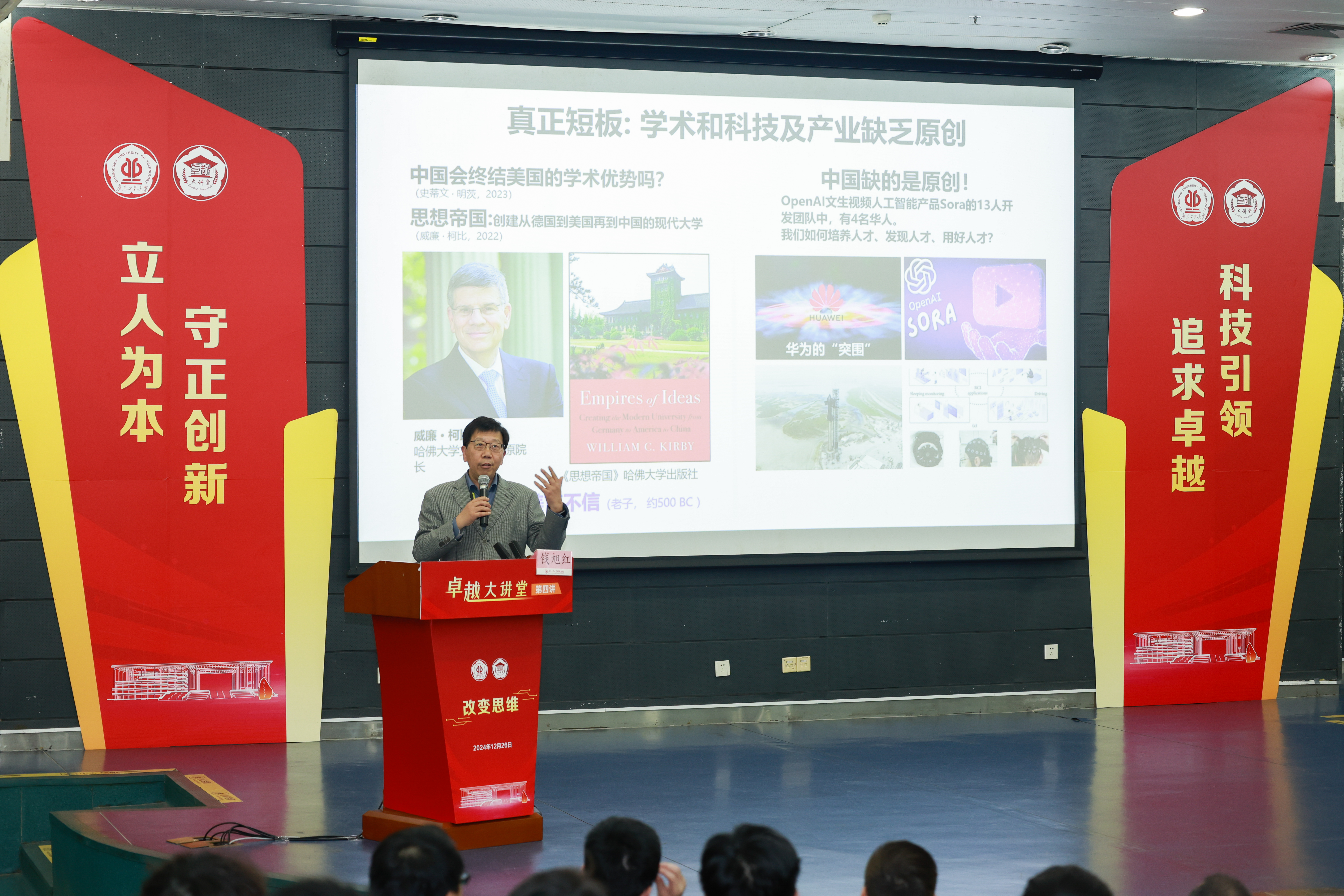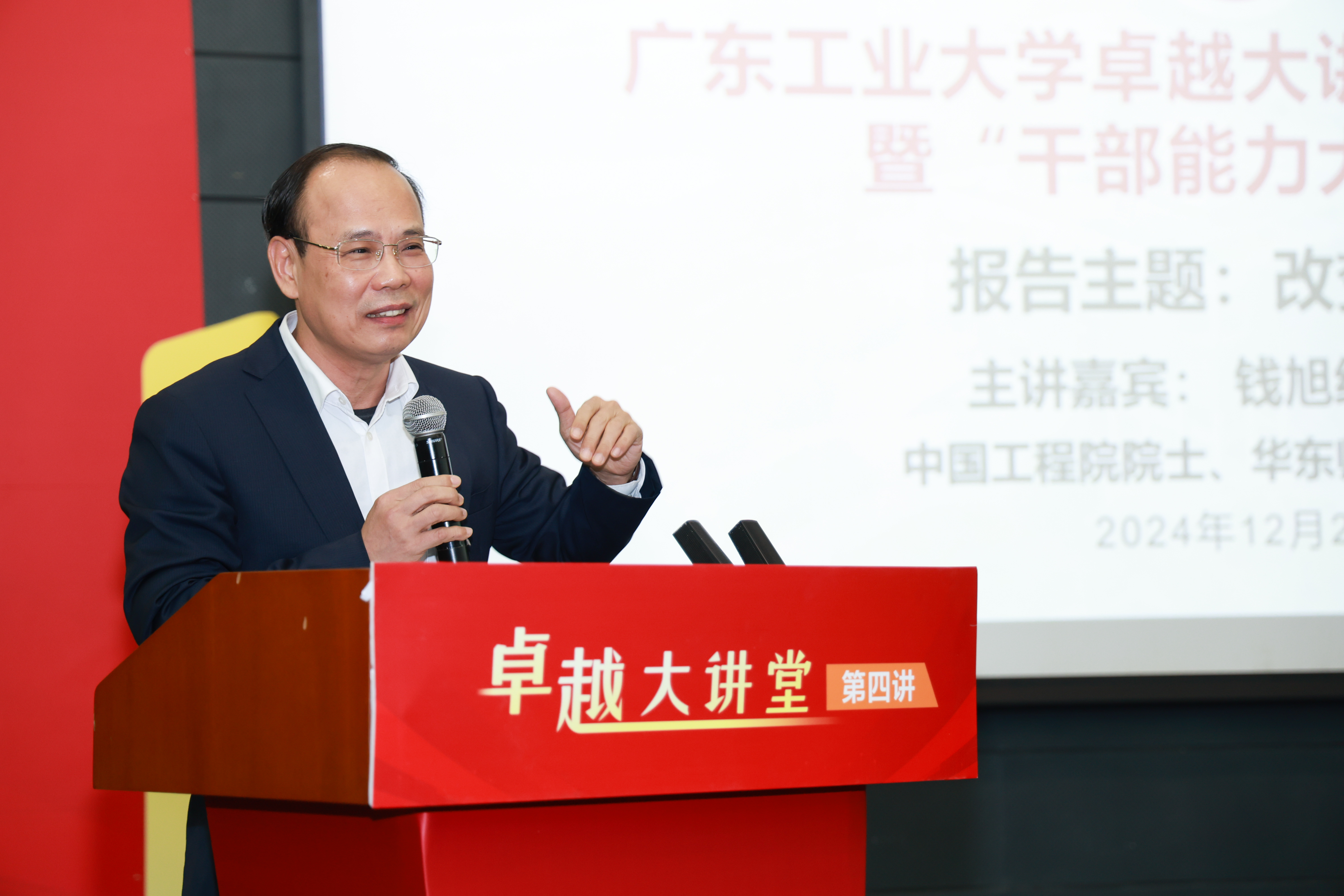 12月26日下午,中国工程院院士、华东师范大学校长钱旭红教授做客星空注册“卓越大讲堂”暨“干部能力大讲堂”,围绕“改变思维”的主题,带来了一场精彩的学术报告。学校党委副书记、校长邱学青主持报告会,全校各机关部处和教辅机构的中层干部、二级学院领导以及研究生代表300多人聆听了报告。