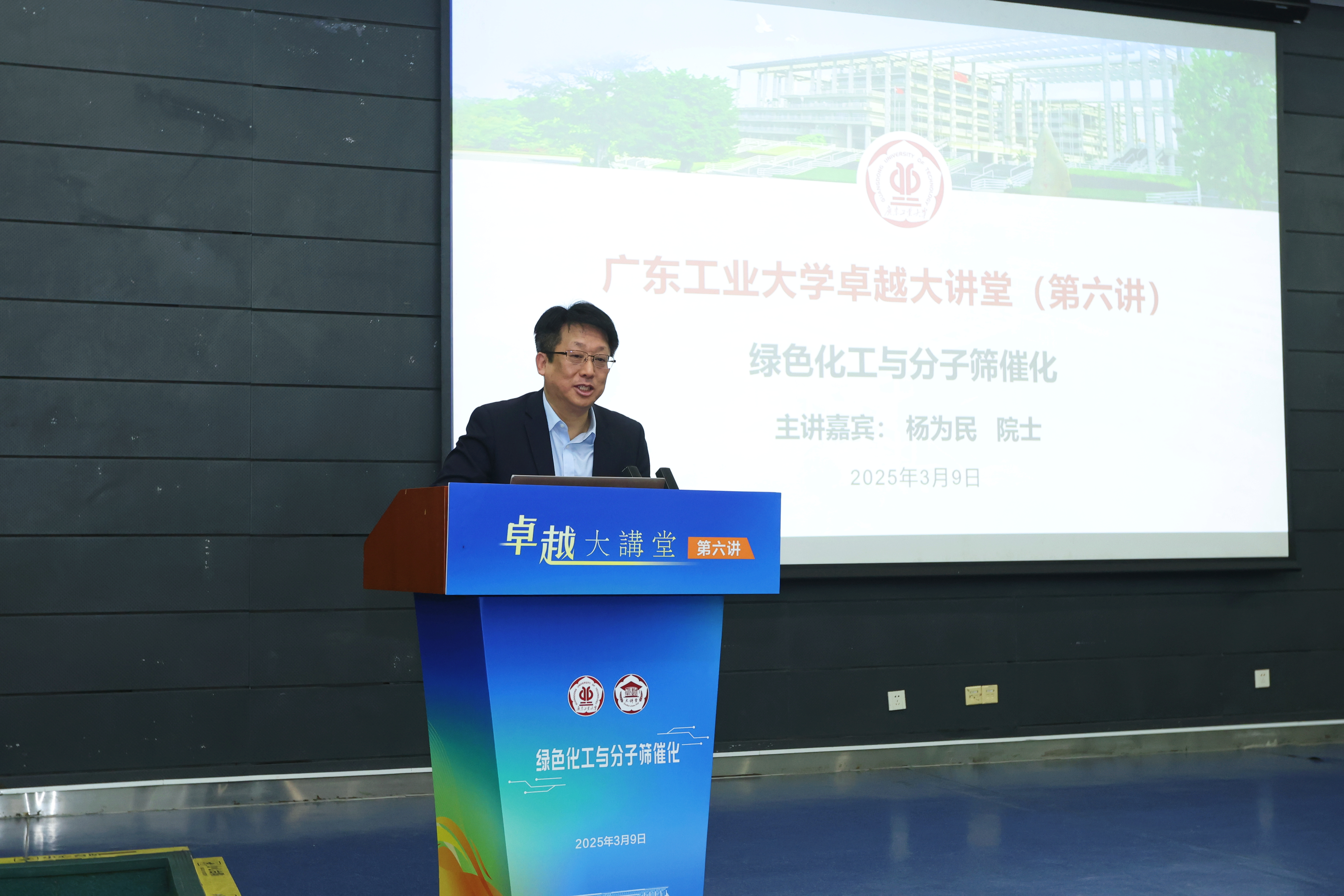 3月9日下午,中国工程院院士、中国石化上海石油化工研究院院长杨为民做客星空注册“卓越大讲堂”,围绕“绿色化工与分子筛催化”的主题,带来了一场精彩的学术报告。报告会由学校党委副书记、校长邱学青主持,副校长余林以及相关部门、学院共300余名师生聆听报告。
