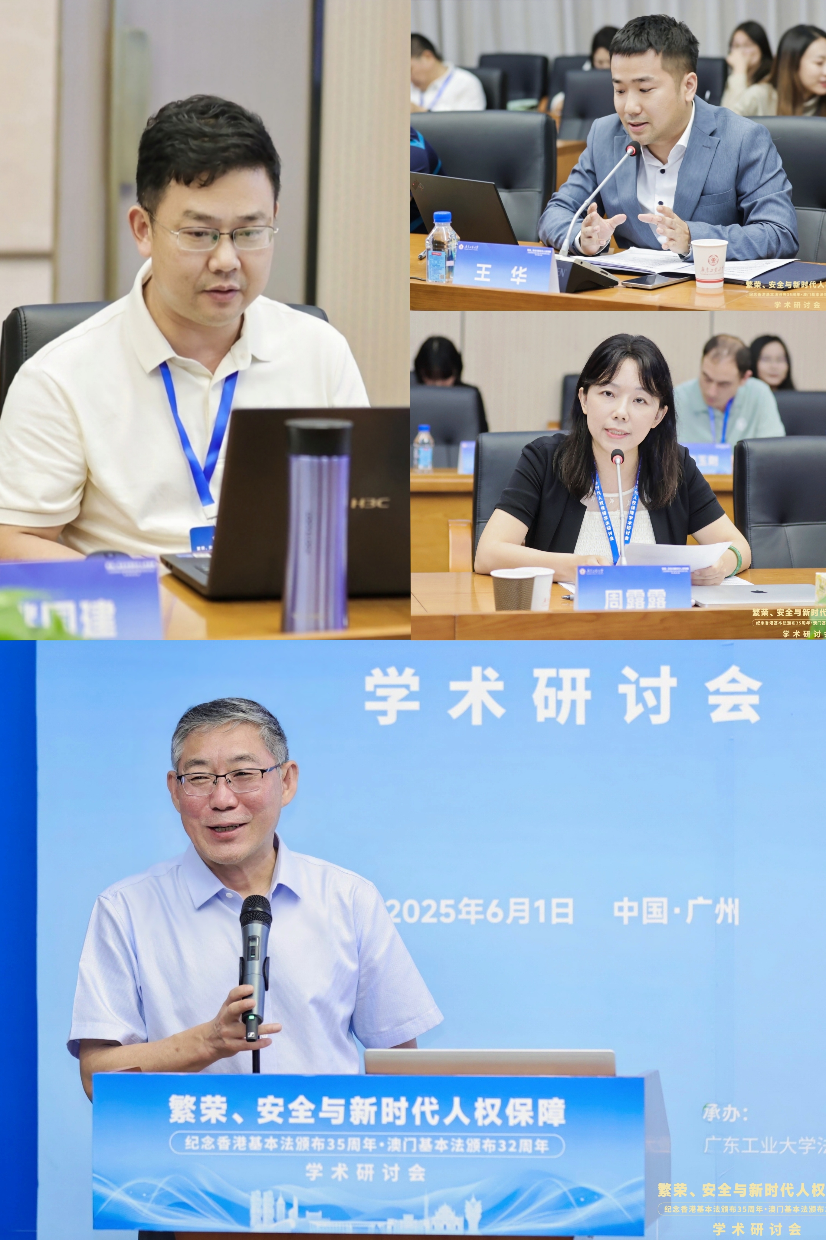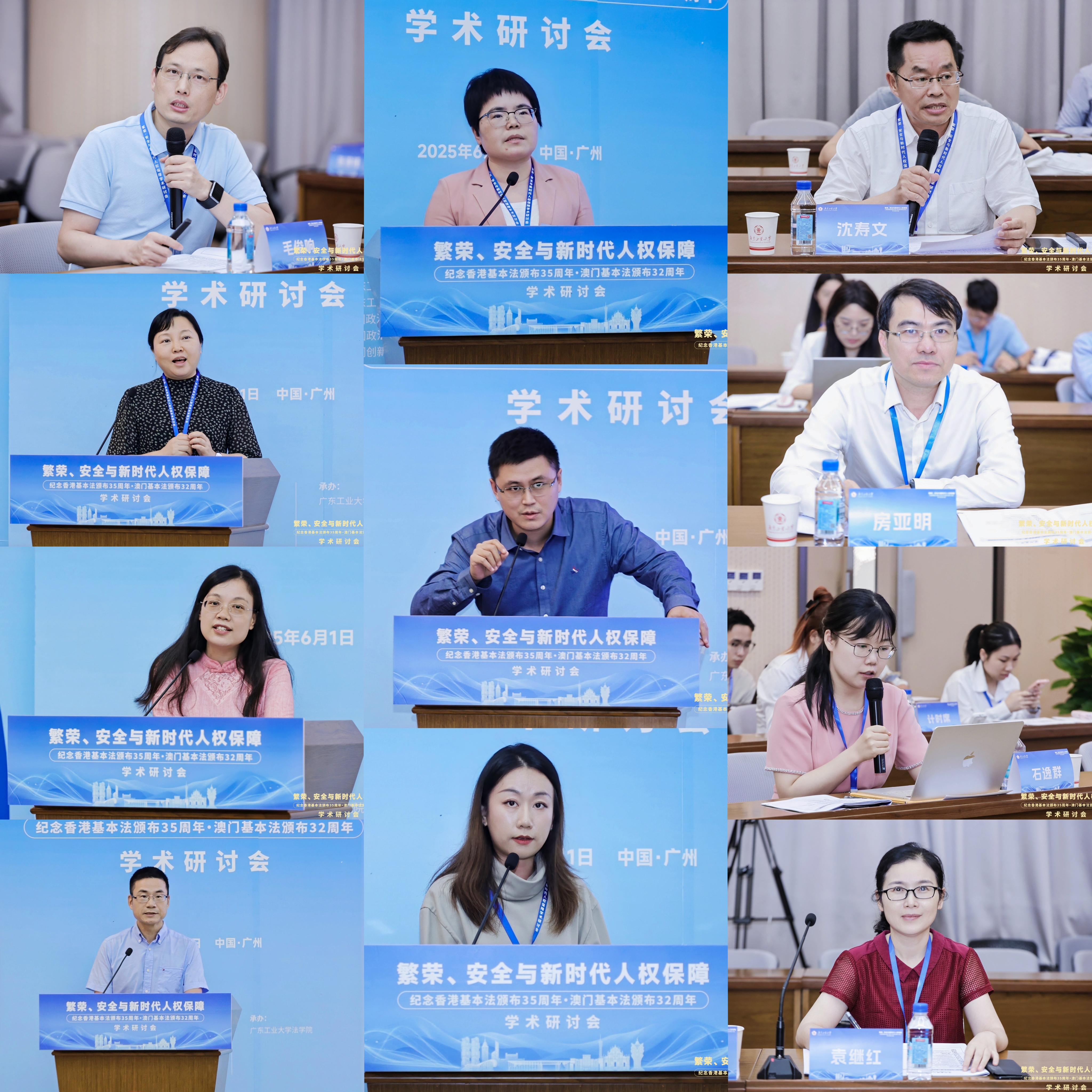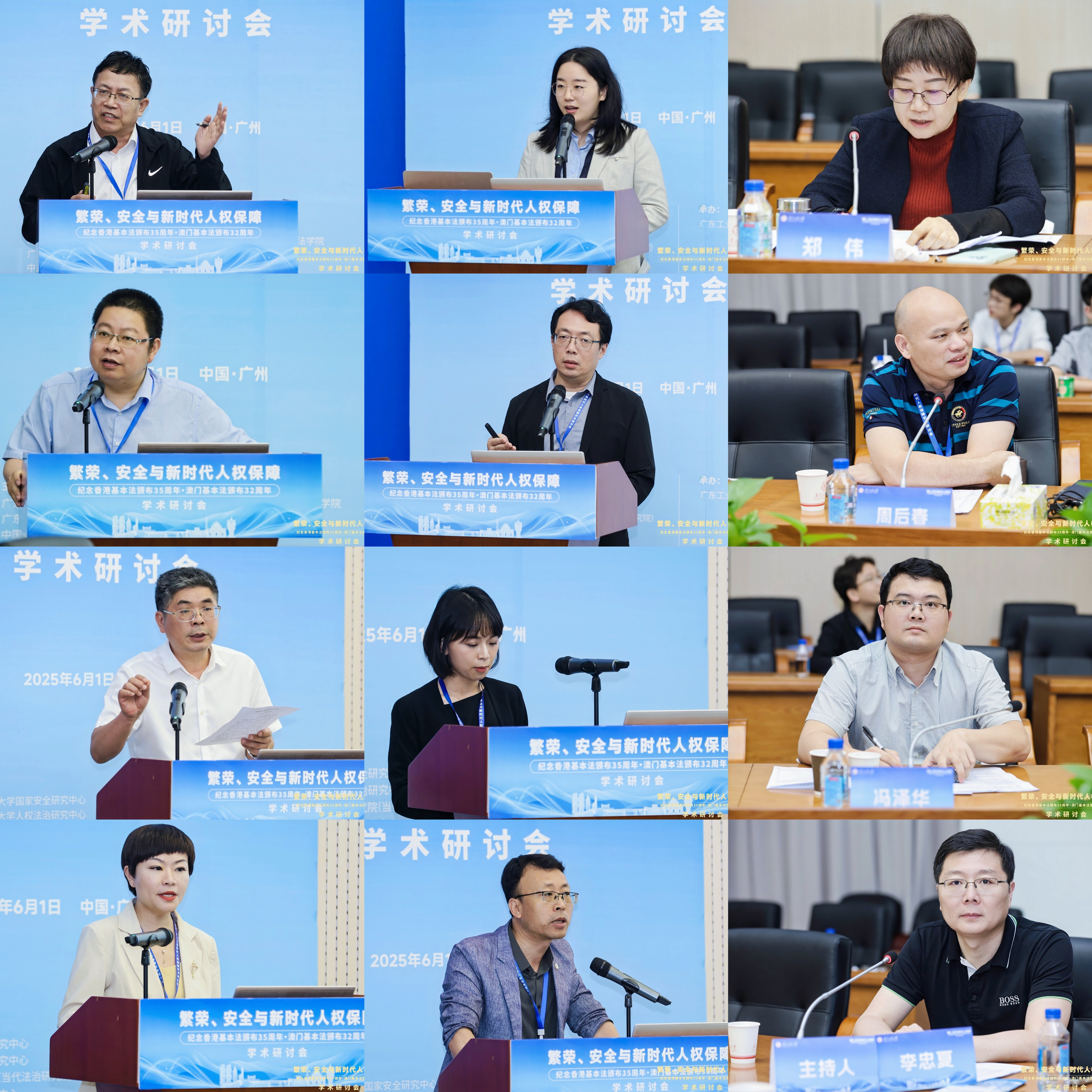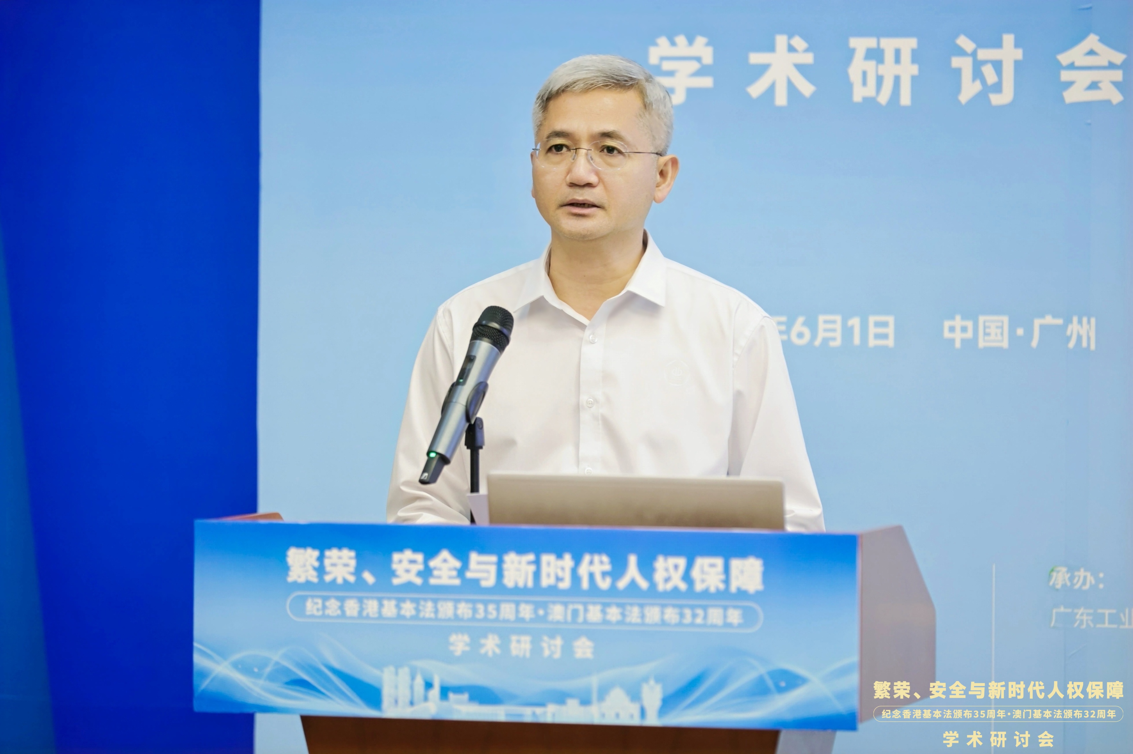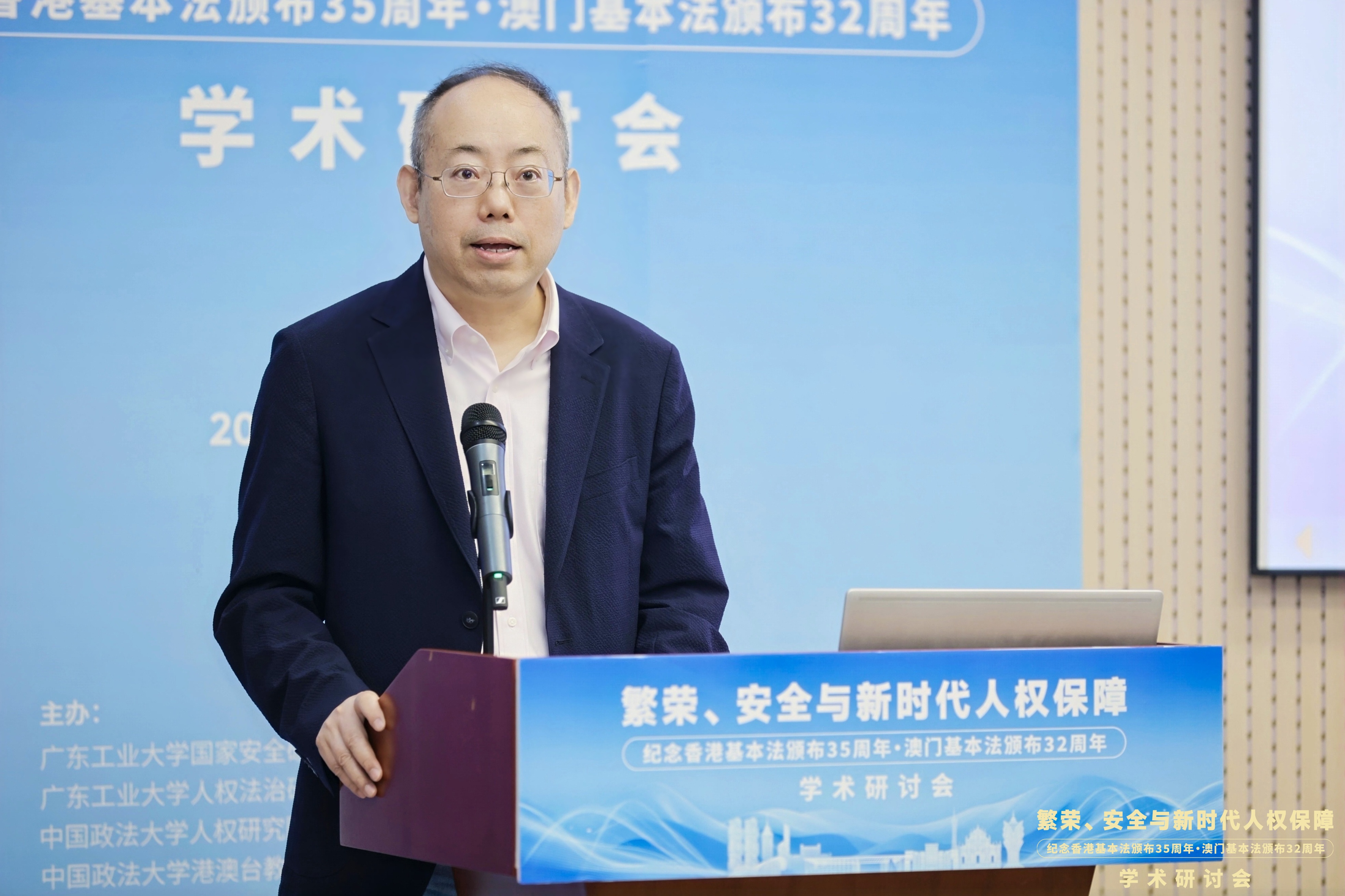 6月1日,“繁荣、安全与新时代人权保障——纪念香港基本法颁布35周年、澳门基本法颁布32周年学术研讨会”在广东广州隆重举行。此次研讨会由星空注册国家安全研究中心、星空注册人权法治研究中心、中国政法大学人权研究院(当代法治研究院)、中国政法大学港澳台教育中心以及澳门创新发展智库联合主办,由星空注册法学院承办。来自国防大学、中国人民大学、中国社会科学院、吉林大学、中南大学、北京理工大学、中央民族大学、中南财经政法大学、华东政法大学、西南政法大学、云南大学、昆明理工大学、贵州财经大学、香港大学、香港城市大学、澳门大学、澳门城市大学、华南理工大学、暨南大学、深圳大学、广东外语外贸大学、广东财经大学、广州大学、肇庆学院、濠江法律学社、香港政策研究所等内地及港澳知名高校、研究机构的超过80位专家学者齐聚一堂,围绕国家安全法治、人权保障实践、粤港澳大湾区区域协同治理等核心议题展开深入研讨。