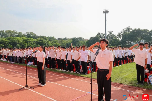 “风起岭之南,潮涌珠江畔。悠远钟声响,初心意气昂……”在全场师生共唱校歌《逐梦》的嘹亮歌声中,开学典礼圆满落下帷幕。